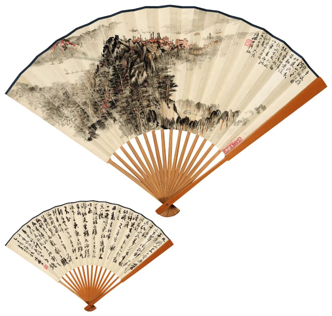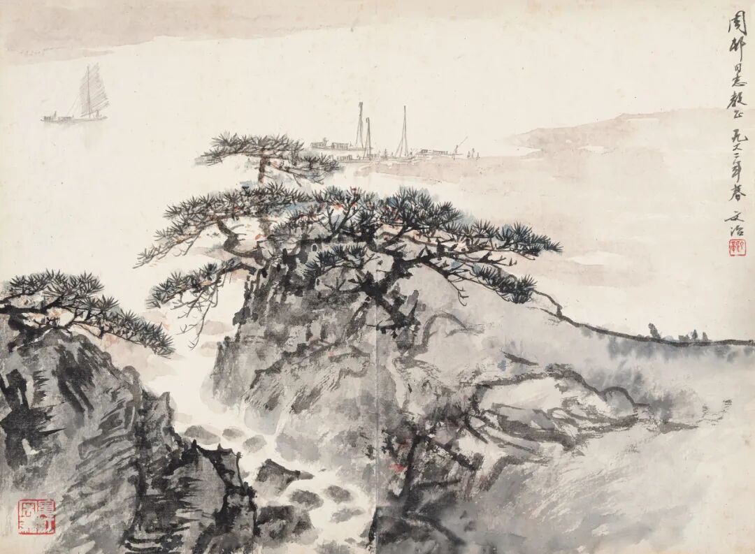 【展览】「启功遗墨展—纪念启功诞辰100周年」,国家博物馆,2012年6月-8月。1.《真茗阁藏名人书画—启功卷》第16-21页,文物出版社,2001年11月版。2.《启功全集》第十二卷,第89-100页,北京师范大学出版社,2003年1月版。3.《当代绘画启功三希堂藏书系》第58-69页,北京师范大学出版社,2010年4月版。根据记游和前贤诗词来进行创作也是册页常见题材,这更有利于画家表达旅途中见到的丰富的景色也会将不同的诗词理解进行系列创作,形成一一对应的连续内容。陆俨少《名贤诗意册》和黄宾虹《粤景游记》,两本册页让我们领略不同主题带来的阅读体验。《名贤诗意册》约为陆俨少上世纪六十年代所作,涉及杜甫、陶渊明等诗意共计十二开,将杜甫等“云气生虚壁,江声走白沙”、“石壁过云开锦绣,酥松隔水奏笙簧”的诗句溶于画境,册页仅0.3平尺每幅,但画中江面宽阔,云山跌宕,气势磅礴,诗画结合足见陆俨少的至臻化境。《粤景游记》尺寸与前者相似,小巧中见恢弘,亦为大师妙手。此册页也是十二开,为白宾虹时期的作品,画中每幅都将粤中所见风景地名及特点题记画上,记录详尽,又赠粤中古籍藏家邓实,很大可能就是对景创作,完成后即留在邓氏手中。翻阅册页,景致变化,可卧可游,仿佛随作者已置身其中,生动变化,印象深刻。估价:RMB 2,000,000-3,000,000【出版】其中十开出版于《陆俨少册页精选》,作品九、十,上海书画出版社,1995年。