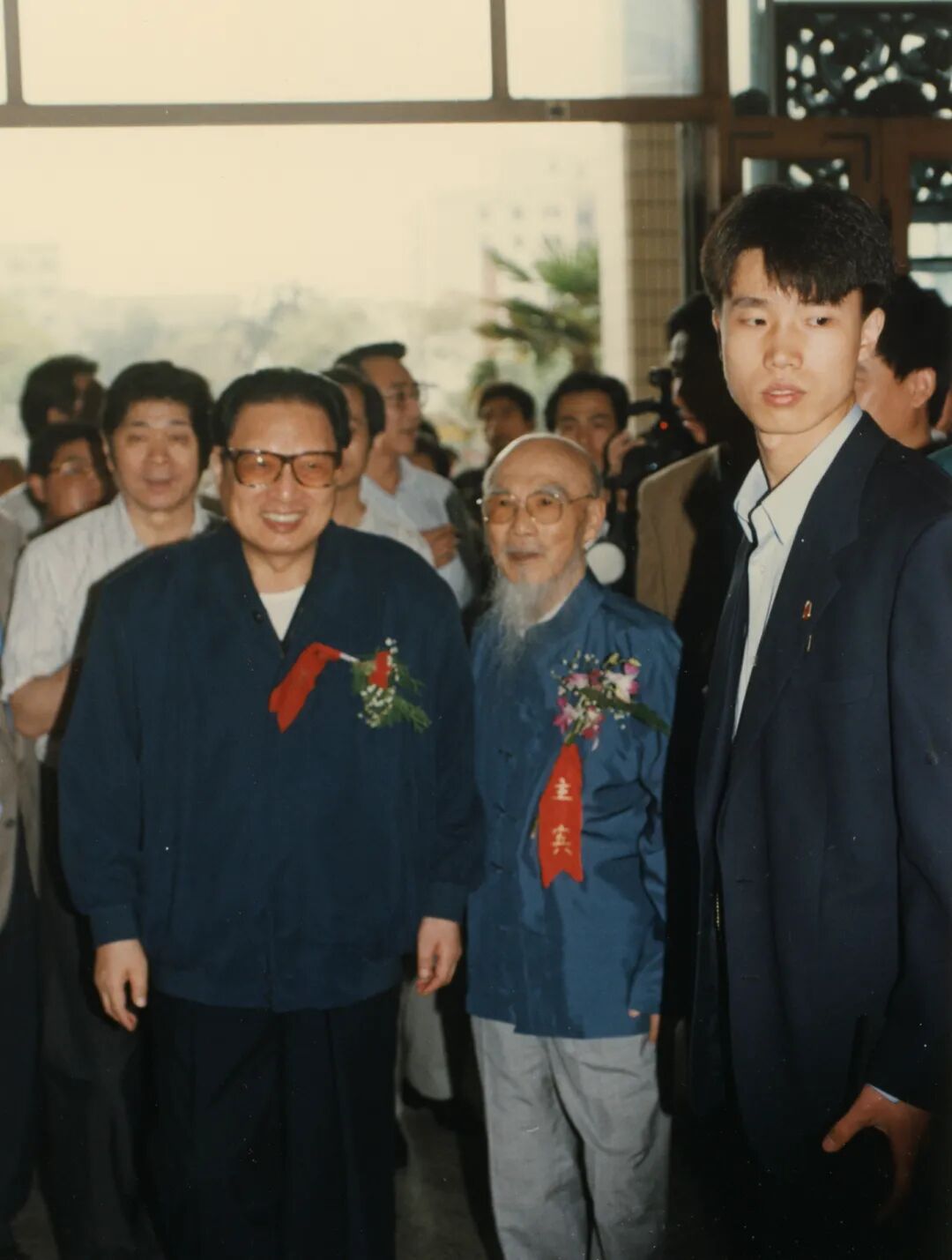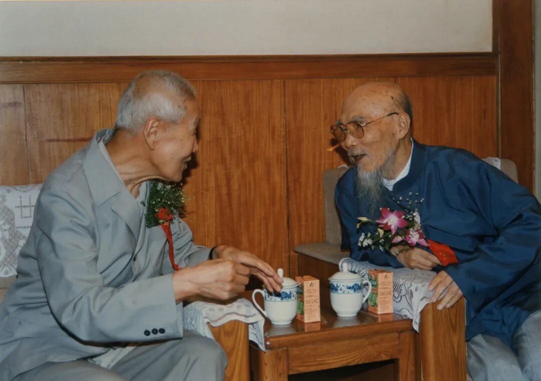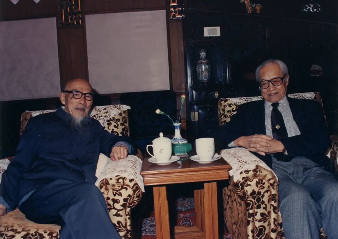刘力上、俞致贞先生1990年元旦到家看望梁树年,并题词赠送