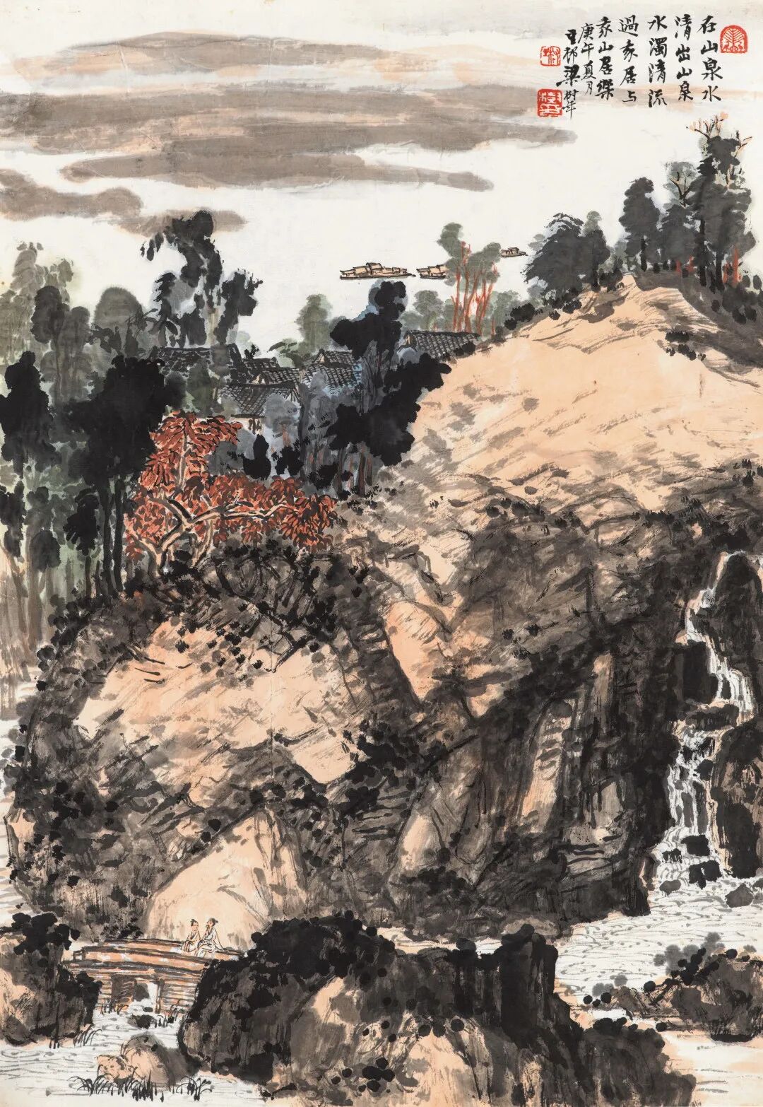 款识:在山泉水清,出山泉水浊。清流过彖居,与彖山居乐。庚午夏月,豆邨梁树年。