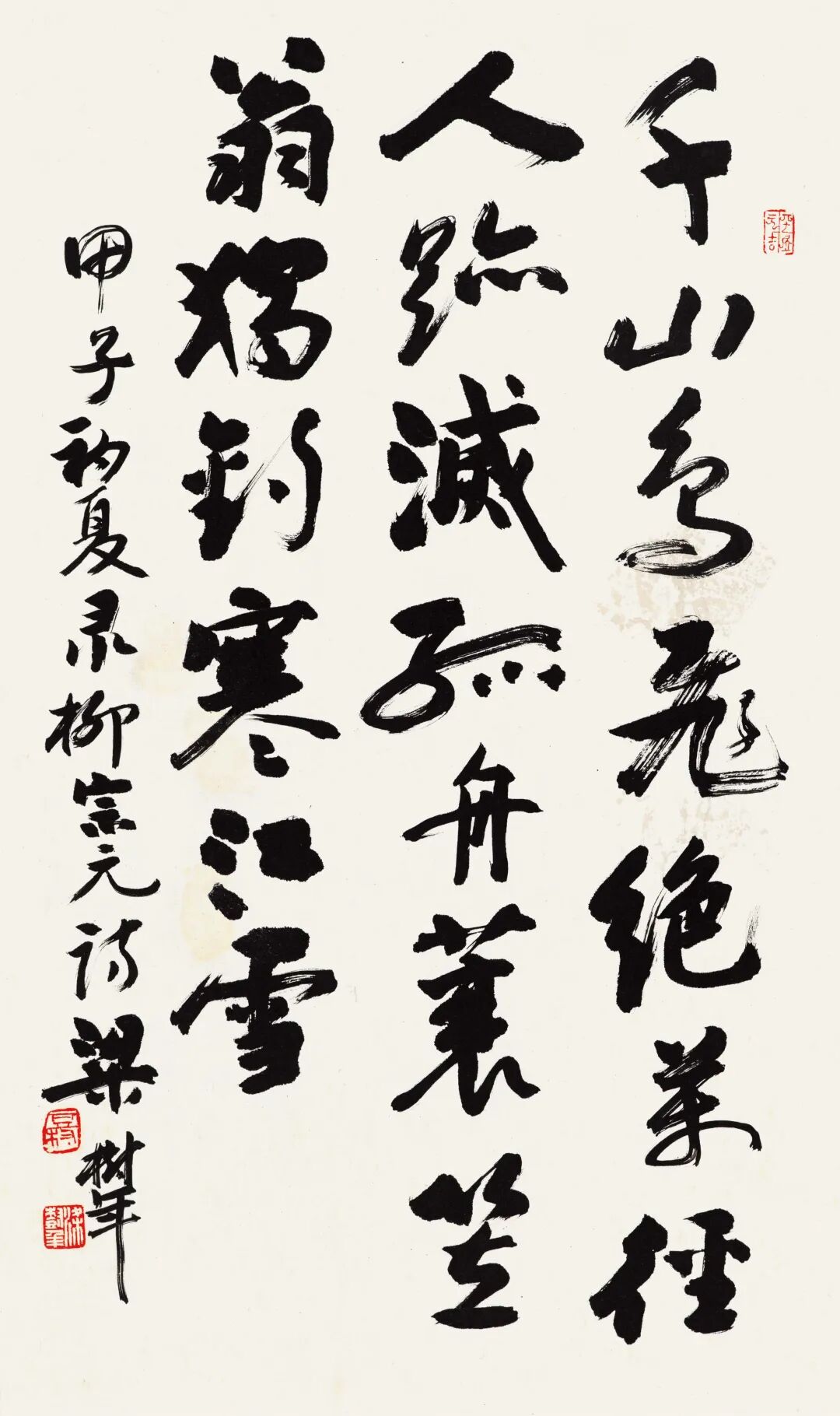 释文:千山鸟飞绝,万径人踪灭。孤舟蓑笠翁,独钓寒江雪。