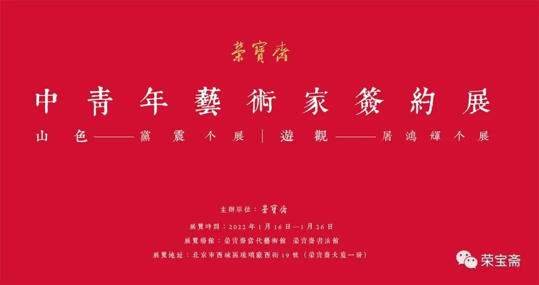 2022年1月16日下午,“荣宝斋中青年艺术家签约展一一党震 屠鸿辉双个展”将在荣宝斋拉开序幕。此次展览是党震、屠鸿辉先生与荣宝斋的签约展,将展出近几年来他们创作的作品,代表了他们的绘画艺术水平。此次展览将开启荣宝斋与中青年艺术家合作的崭新模式。