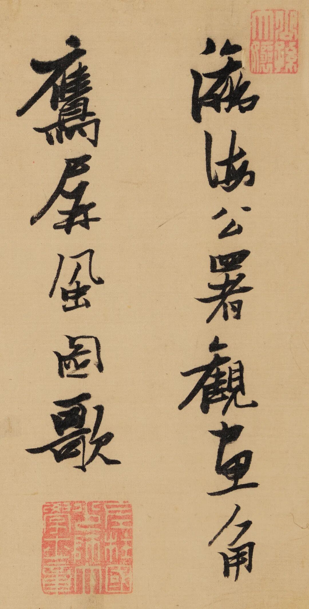 张瑞图,字无画、长公,号二水、白毫庵主人,福建泉州晋江人。万历三十五年进士,官礼部尚书兼东阁大学士。善画山水,法黄公望,亦工佛像。书法奇秀,与邢侗、米万钟、董其昌合称“晚明四家”。据《明史·阉党列传》载:“自(顾)秉谦、(魏)广微当国,政归(魏)忠贤。其后入阁者黄立极、施凤来、张瑞图之属,皆依媚取容,名丽逆案。”因此,后世认为趋炎附势取得的信任与偏袒,使得张瑞图、施凤来等阁臣,对于魏忠贤唯命是从,故又被称为“魏家阁老”。由于宦官魏忠贤专擅朝政,势焰熏天,依附于阉党的“探花郎”张瑞图,仕途也平步青云。是年(1626),其迁礼部侍郎,秋季,又与同年“榜眼”平湖施凤来同以礼部尚书入阁,很快,再度升迁,晋建极殿大学士,加少师兼太子太师,可谓位高权重。而事实上,张瑞图可查证与“阉党”的交往,似乎只有为魏忠贤生词“书丹一事”,且题写匾额后,并未署款。此外,并未见其他迫害东林党人的“劣迹”记载。所以,在崇祯皇帝清算附逆“阉党”时,张瑞图一次次上疏自辩,乞求免官,最终以“结交近侍又次等”之罪,又“纳资赎罪”,逃过牢狱之苦。毫无疑问,张瑞图为人所诟病的根本缘由在于性格软弱,又出身贫寒,没有靠山,故而前期在高中探花后,为谋求仕进,有不惜钻营的心思。而随着仕途的高升,品尝到“捷径”带来的功名富贵后,又令他不自觉地选择“进退于阉党之间”,没有明确的立场。进而“四次告老还乡”,以期夹缝求生,既是选择“自保”,躲避“党争”的直接交锋,同时也是饱读儒家经典,内心根深蒂固的“忠孝礼义”,令他的“矛盾”思想,与日俱增。由此可知,张瑞图最多可算“骑墙派”,视其为“阉党”的污名,并不恰当。他的“挣扎”,正是晚明混乱政治环境的例证,亦是彼时众多“文人”扭曲社会价值观的缩影。“攀附逆党”与“传统士人”的矛盾,使得“书法”成为张瑞图反叛束缚、独辟蹊径的“情感通道”。而他“有意识”舒散积郁,所呈现的个性张扬,突破“钟、王”藩篱的书风,笔势生动,奇姿横生,对于稍晚的“晚明书坛三株树”黄道周、倪元璐、王铎的影响,当有开启之功。其书法又与董其昌、邢侗、米万钟齐名,也有“南张北董”美誉,同时与王铎、傅山、倪元璐、黄道周等有“晚明五大家”之称。其书名远播海外,日本书坛称之“气脉一贯,独自风格”。闽人梁章钜于其所著《退庵所藏金石书画跋尾》中曾言:“盖一艺之工不以人废,况晋江龌龊守位,非有蔡秦专权误国之迹,后之评书者但当赏其神骏,勿以其素行而訾及翰墨也,此论甚公允。”史可法题字张瑞图书册,亦曾言“其字天下奇,其人姑置之”,皆算是对张瑞图“品行”以及“超绝书法”的公允评介。相较于“千人一貌”的台阁体,张瑞图的书法,力矫时弊,别具“奇逸”之态,有着典型的个人面目。而于“二王”帖学一脉的内敛含蓄,柔媚时尚等,其也是不拘一格,绝去依傍,结体横撑等,可谓奇姿如生龙动蛇。近人张宗祥在《书学源流论》谓之:“明之季世,异军特起者,得二人焉:一为黄石斋(黄道周),肆力章草,腕底盖无晋唐,何论宋、元;一为张二水(张瑞图),解散北碑以为行、草,结体非六朝,用笔之法则师六朝。此皆得天独厚之人。”清人杨守敬《跋张瑞图<前赤壁赋>》亦言:“顾其流传书法,风骨高骞,与倪鸿宝(倪元璐)、黄石斋(黄道周)伯仲。”梁巘《评书帖》中,也说:“瑞图行书初学孙过庭《书谱》,后学东坡草书《醉翁亭》,明季书学竞尚柔媚,王(王铎)、张(张瑞图)二家力矫积习,独标气骨,虽未入神,自是不朽”。如北京故宫博物院藏其作《行草书五律诗轴》,行草写之,峻峭劲利,笔势生动,结体则拙野狂怪,布局交错凌厉,自成一格。而其行楷书,则如这件北京保利拍品“行书旧作诗四篇”册页,绢本,打破传统的用笔模式,充分运用侧锋,结体横势蹙展,空中取势,露锋铺毫,知“钟王之外,另辟蹊径”,大抵如是。“行书旧作诗四篇”册页,款识:“天启丙寅书于东湖之审易轩。瑞图。”知为张瑞图作于1626年,时年五十七岁。美国纽约大都会艺术博物馆藏张瑞图《行草书法册页<后赤壁赋>》”,亦是作于天启丙寅年,款识风格、布局等,与“行书旧作诗四篇”册页,可谓如出一辙。如“审易轩”中“轩”字,都是于另一开起笔书写,题识“瑞图”。究其缘由,或应是由于册页的特殊形制,预防“款识”部分被不法之徒,挪作他用。明代书札中,常有“冲”、“左冲”、“左素”、“余素”等,表明书信内容到此为止,可防止信札在投送过程中被人拆开后,私自在上面添加内容而引致其他后果。私以为,明晚期因东厂、西厂、锦衣卫等拆阅手迹而招祸、嫁祸的例子,当不鲜见。而张瑞图久居宦海,目睹“阉党”行事手段,为求自保,自然更是小心翼翼。此亦可反映彼时朝局“宦官专权,党争残酷”之昏暗。张瑞图的作品中,很少见上款,应也是怕遗人口实,而卷入是非之中,可猜测当系其刻意为之。款识中“东湖”应即“东湖草堂”,设于“拙巢湖”南畔,与“审易轩”同为张瑞图故居的“斋室”,常见于其六十岁以前诗文中。其晚年筑室白毫庵,又自称白毫庵道者或白毫庵主。天启三、四年间,“阉党”与“东林党”争斗日益激烈,为免陷入“党争”旋涡,张瑞图告假回乡,悠游湖山,而东林党人杨涟、左光斗等迭遭黜逐。天启五年十一月,朝廷拟擢升张瑞图为礼部右侍郎兼翰林