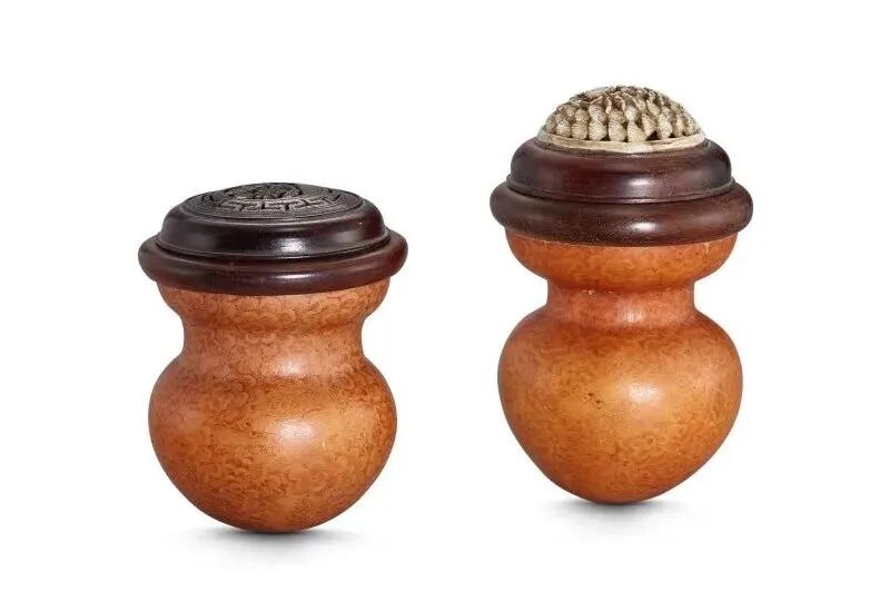 匏制蟋蟀盖罐一组两件