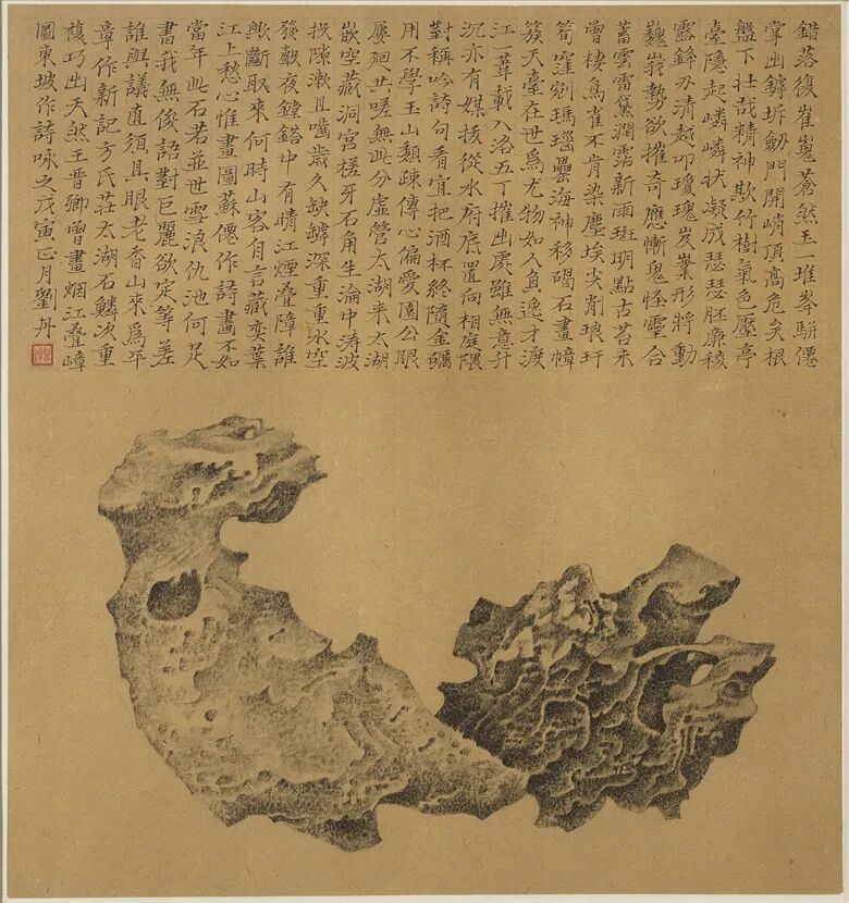 刘丹(1953年生) 《太湖石》,1998年作,水墨 纸本。38 x 41 cm.。估价︰70,000 - 90,000 美元。此作将于2022年1月27日在佳士得纽约皮耶·鲁埃尔珍藏拍卖中呈献