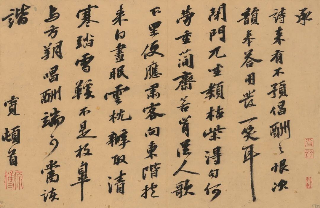 吴宽 承诗帖、刘珏 和沈恒吉诗 美人帖、王鏊 平生踪迹帖拍品估价:1,000,000 - 2,000,000 人民币鉴藏印:毛怀(朱)有竿不钓鱼(朱)中心喜之(白)朱省斋书画记(朱)庚申以后所得(白)保三鉴藏(朱)秉锳(朱)省斋(朱)1.《图说朱省斋读画记》图版,牛津出版社,2022年。2.《书画随笔》P112、144-145,星洲世界书局,1958年。祝允明《罕见南京任上用宋纸本书 卢廷玉像赞》作于嘉靖元年1522 年,祝允明任应天府通判,在南京任上不到一年即辞官,因此祝允明署“应天府通判”款仅此一年任上时期,所存极罕。已知署“应天府通判”款的作品,都可见严谨庄严的书风。祝允明在“诸体兼善”、“有明第一”书家形象之下,其明中期文学家的内核不应被埋没。此本《卢廷玉像赞》作为祝氏新发现的完整文章作品,意义重大。在这样一篇应用文像赞中,祝允明不仅以“于我乎……于我乎”力追古奥的句式彰显他作为“古文辞”运动的主要倡导者的文学追求,更在其严谨精修的行楷书风之上表达其浪漫主义文风,此作兼祝氏文学与书法双绝,可称珍贵。像赞人物卢廷玉即吴中乡贤卢珪,家居葑门塘。祝书中“吴公有文”即指礼部尚书吴宽曾亲自为卢廷玉作《葑门塘改造二桥记》以记其事迹善举,可见卢廷玉其时名声之斐然。文书双绝之外,祝允明对于《卢廷玉像赞》的重视程度于书写所用纸墨以及格式可见一斑。此作以宋纸写就,透过纸幅仍依稀可见背面公文字迹。佳纸之余,其所用古墨精良,墨笔行文之中色泽通透、浓淡呼应。面对如此高规格的书写用具,无怪乎祝氏会选用严肃工整的书体以示匹配。而从此作平阙得当,”孝皇有诏”保留抬头等诸多细节中不仅体现时代特征,更表达出祝氏严格恪守书写格式,一丝不苟完成此作的认真态度。纸精墨妙、文佳书绝,是距今五百年前祝允明对待得意之作力求完美的证明。是年春二月,祝允明又得览赵孟所书《圆觉经》并敬书一过,也可见本作书体之起源。拍品估价:500,000 - 800,000 人民币鉴藏印:祇可自怡悦(白)朱省斋书画记(朱)老卧(朱)子孙保之(朱)江南(朱)卧庵所藏(朱)省斋(朱)1.《图说朱省斋读画记》图版,牛津出版社,2022年。2.《书画随笔》P112、144-145,星洲世界书局,1958年。4.《省斋读画记》P90,一书斋书局,1960年代。刘珏是沈周最重要的导师之一。本件为刘珏借沈同斋(即沈周父亲沈恒吉)之韵作诗。在刘珏《清白轩图》(台北故宫藏)上,有沈恒吉题诗,与本件刘珏《漫兴诗》同韵、同主题。这无疑是刘家与沈家关系中新发现的重要史料,也是由名画《清白轩图》延伸的吴门画派重要文献。刘珏与沈恒吉、沈贞吉、沈周以及祝颢等一批明前期的文人有着姻亲、师承和同僚的关系。他与内阁首辅徐有贞、画家夏昶和隐士文人杜琼均有交往,得益于官员和文士的双重身份,将官绅与隐士、文化家族达成的共同趣味,通过自身的影响力,推动了这一趣味下吴门画派的兴起。吴宽、王鏊曾双双为刘珏《完庵集》作序,付梓后,由祝允明作赞。祝允明祖父祝颢撰写的《刘完庵墓志铭》和祝允明的《刘先生祠赞》,都对刘珏推崇备至,高度评价了刘珏为官之清廉。刘珏本人也以“清白轩”命名自己的住处,辞官致仕后号“完庵”以期保全名节。拍品估价:500,000 - 800,000 人民币1.《图说朱省斋读画记》图版,牛津出版社,2022年。2.《书画随笔》P112、144-145,星洲世界书局,1958年。本件吴宽书法为发现的完整诗文作品,是吴宽“不预倡酬,次韵奉答”给友人回赠的诗歌。吴宽为明成化八年(1472)状元,博闻好学,学有根底,诗文和平恬雅,有典则,在吴中素有文名,当时很受后辈景仰,其中包括后来官至南京吏部尚书、与王阳明分庭抗礼的哲学大师罗钦顺、官至南京礼部尚书的顾清和汪俊。顾清曾多次去吴宽家,提及对吴宽的景仰之情。罗钦顺和顾清都有与本件吴宽同韵和诗留存传世,而此诗文唱和的缘由,是因为汪俊自酿新酒分赠友人,吴宽虽未参与此聚会,但和诗极有可能是为此事所作。诗中首句“闭门兀坐类枯柴”不仅和“柴”字韵,还凸显出其年事已高不得已在家不能出门的无奈之情,和自嘲诙谐之意。“若肯从人歌下里”一句更可看出吴宽于通俗文学并不排斥的态度,由此吴宽与小辈诗词唱和信手拈来的诗句中不仅显示出吴门文化圈的包容性,并且可见吴宽身为文坛巨擘却平易近人的为人品行。另外,根据本件“原博”朱文印显示的磨损程度知此为吴宽最晚年用印。拍品估价:500,000 - 800,000 人民币1.《图说朱省斋读画记》图版,牛津出版社,2022年。2.《书画随笔》P112、144-145,星洲世界书局,1958年。王鏊《平生踪迹帖》为新发现的王鏊书法完整诗文作品。王鏊诗文用典独特,尽显其文坛巨擘之身份。王鏊此诗运用大量意向来表达其个人的感受。如“泰华、武夷”“五湖、洞庭”“野鹤、槟榔、荔子”等。作者在诗中的字里行间仍然表达出自身极为强烈的政治功名观念,这与其好友吴宽大不相同。而在文学上体现出强调道德与学养,不偏重于唐宋或秦汉一方。Lot 1397 王铎 1622 年为周瑞豹、周瑞旭兄弟自作诗卷存世最早年墨迹