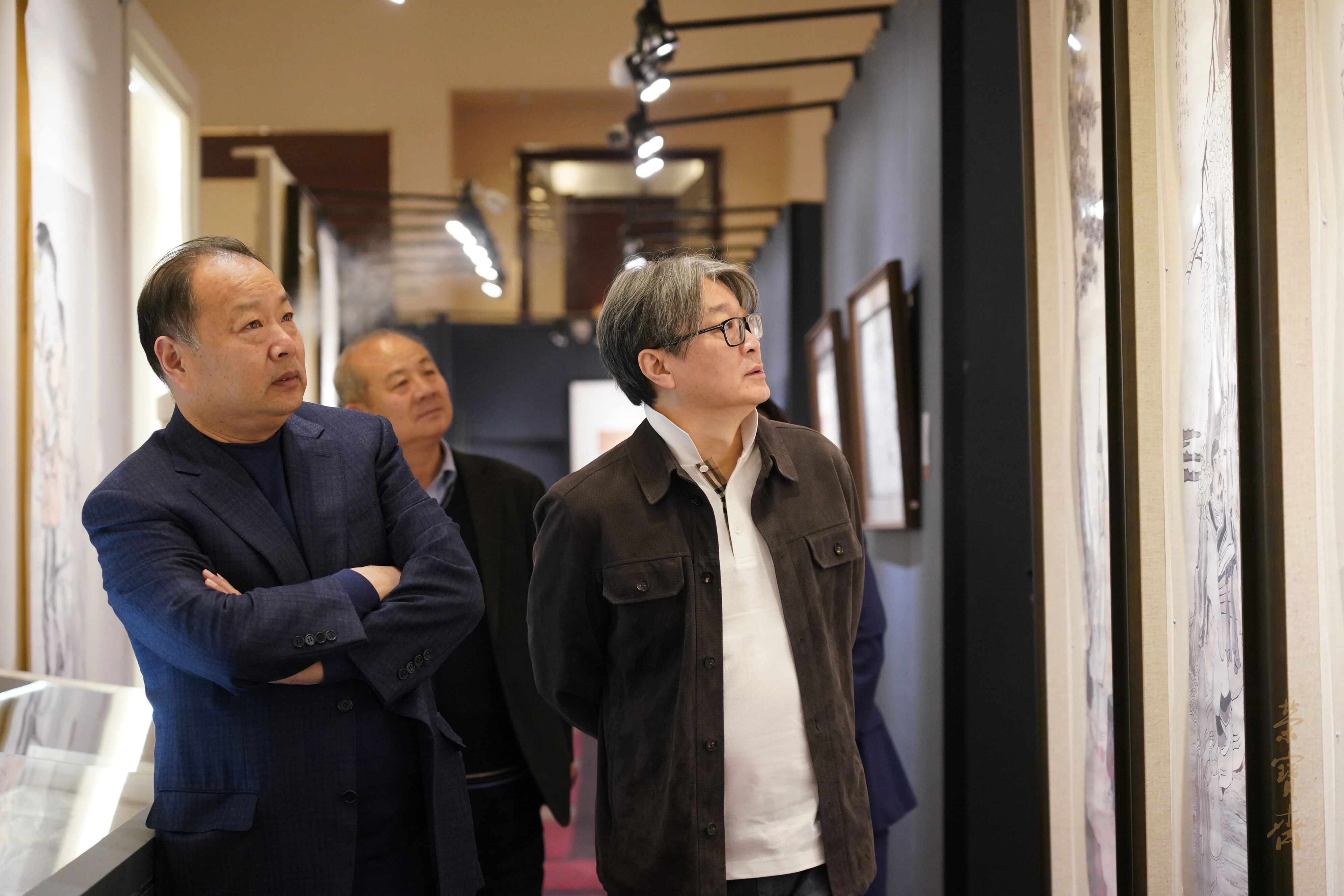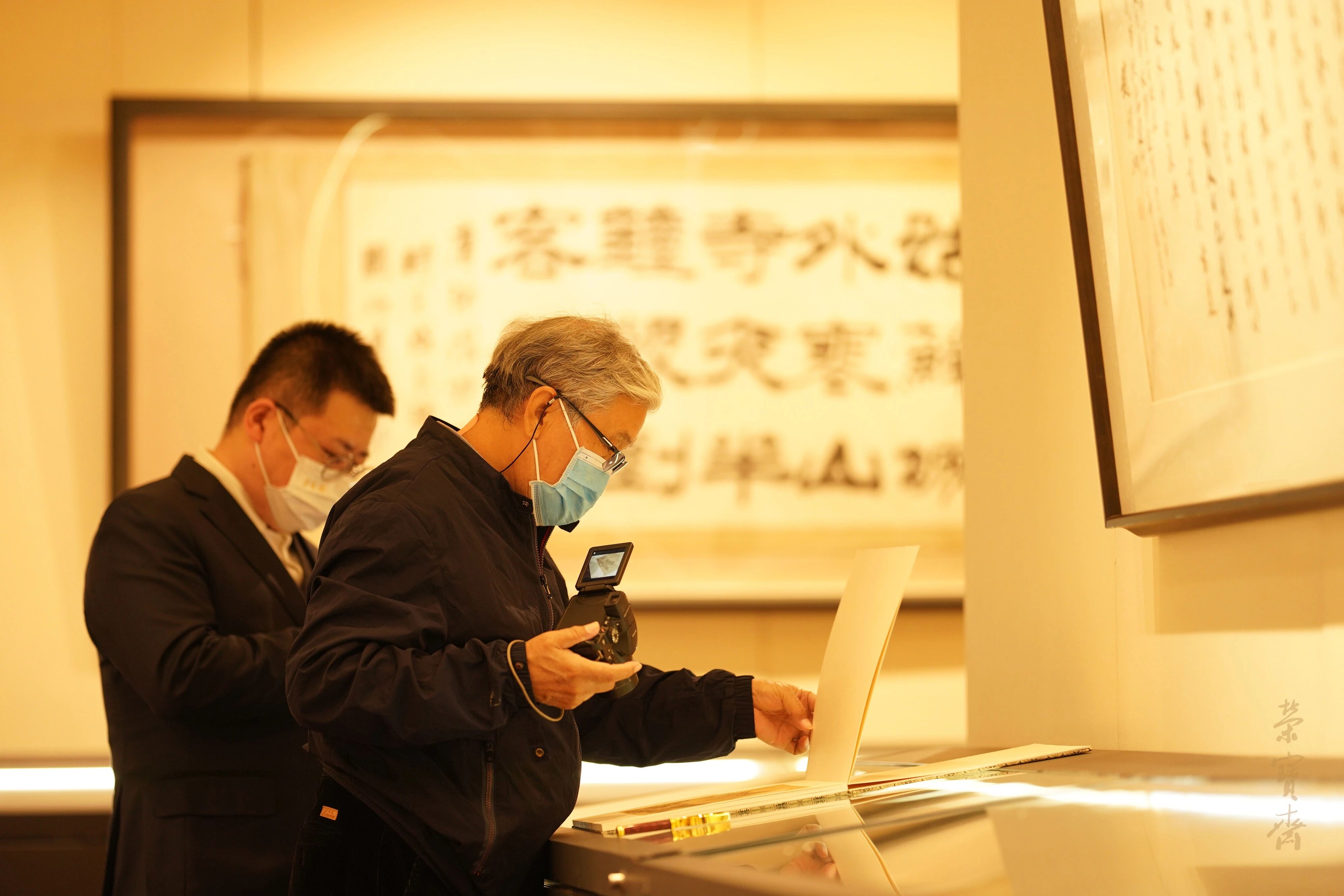 荣宝斋常务副总经理、北京荣宝拍卖有限公司董事长兼总经理范存刚陪客人参观预展现场