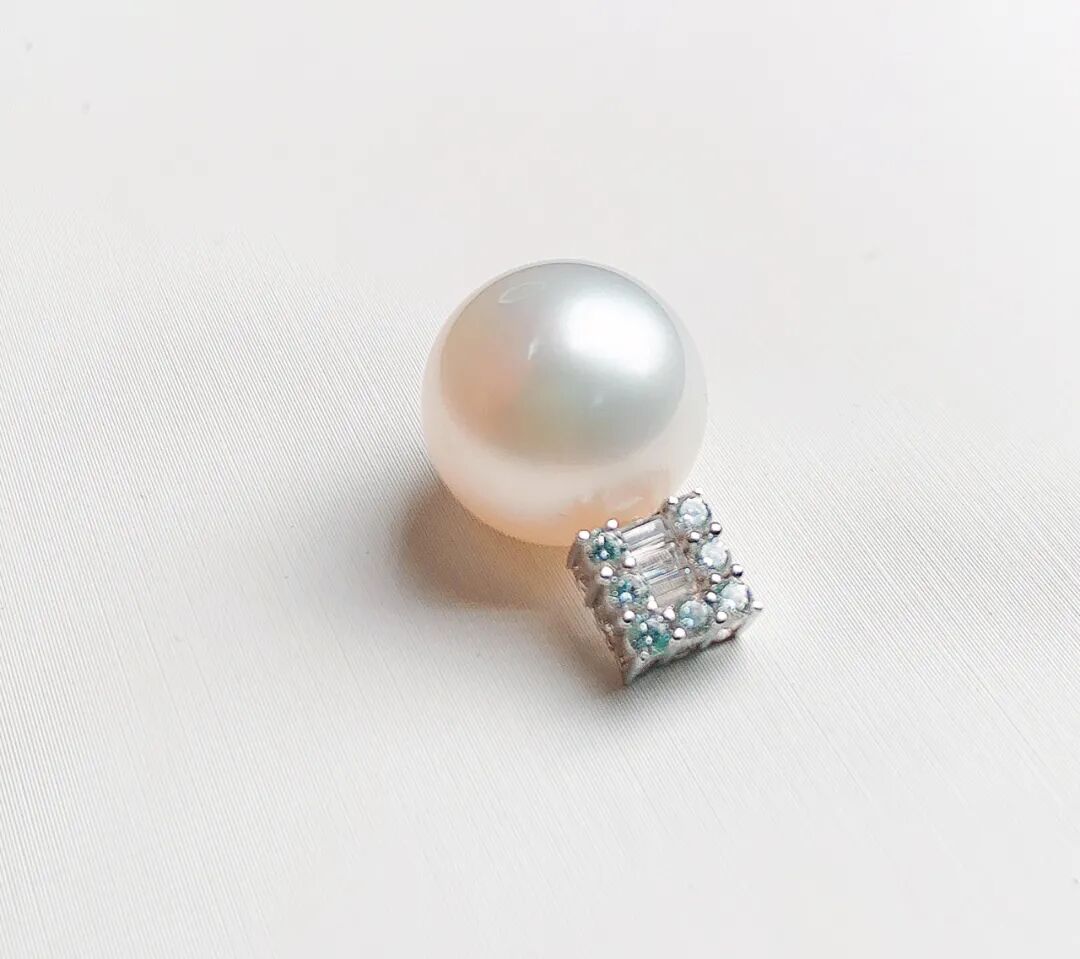 13mm澳洲南洋冷光白珍珠吊坠配14K白金正方形配件