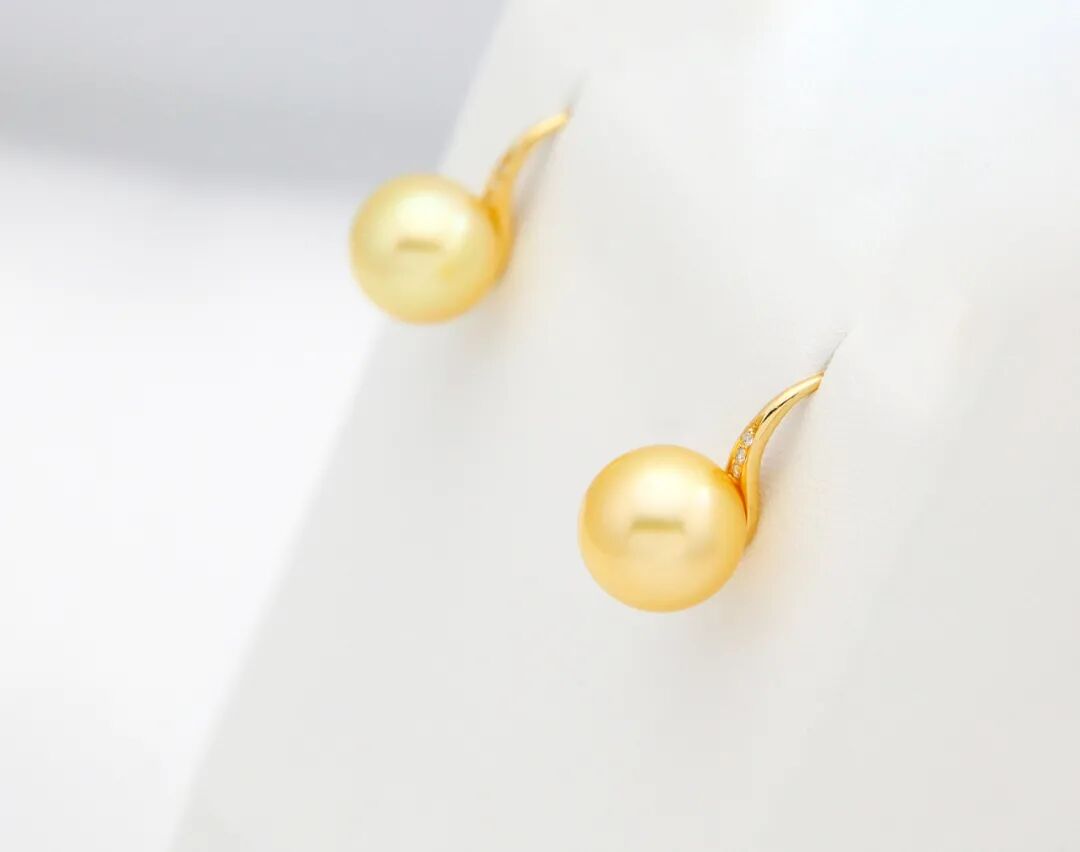 11-12mm南洋浓金珍珠配14K黄金耳坠一对
