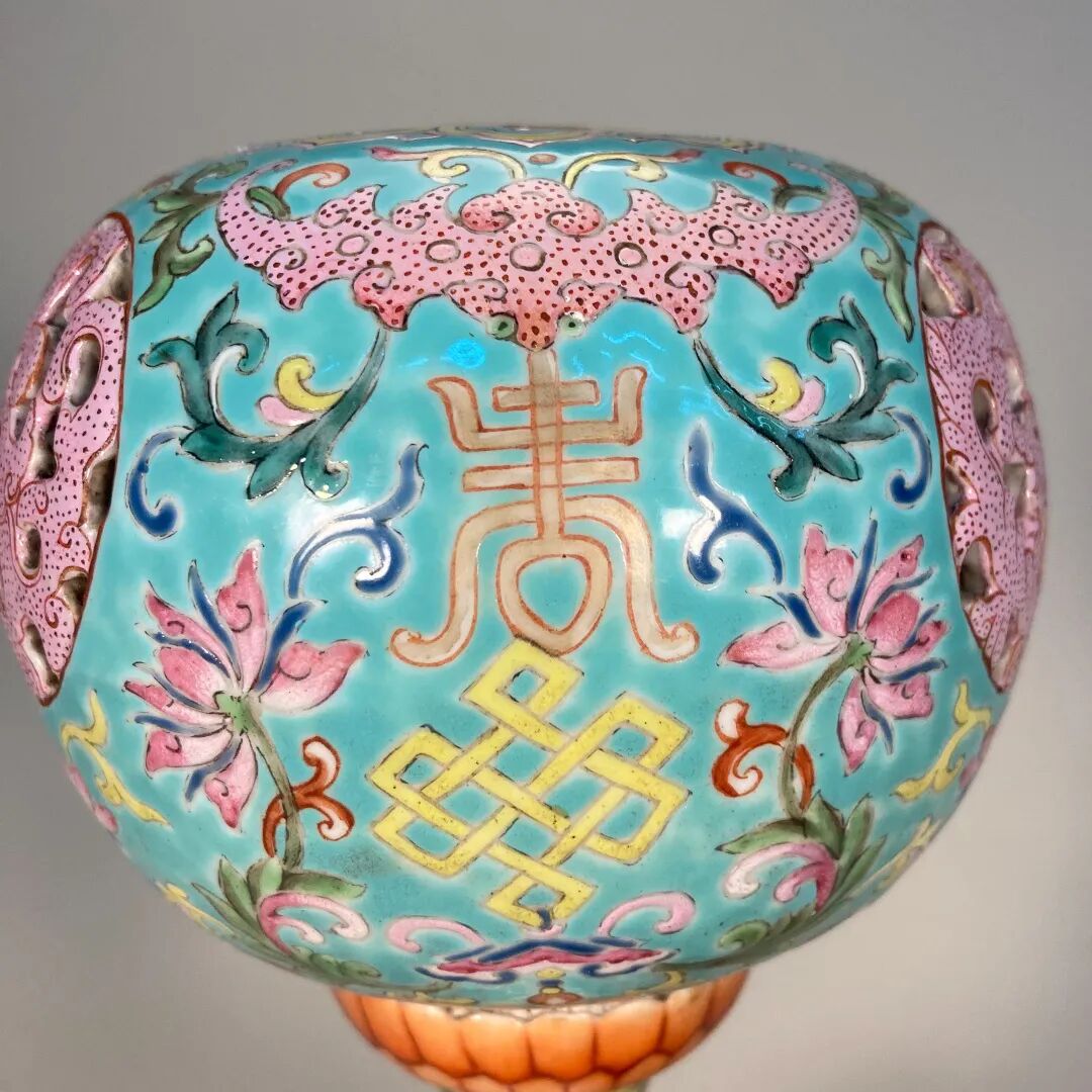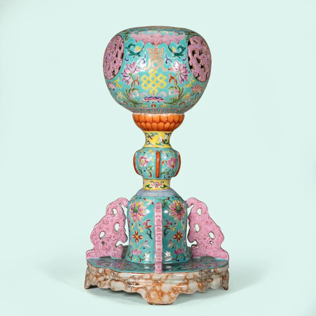 清中期 粉彩福寿连绵帽架
