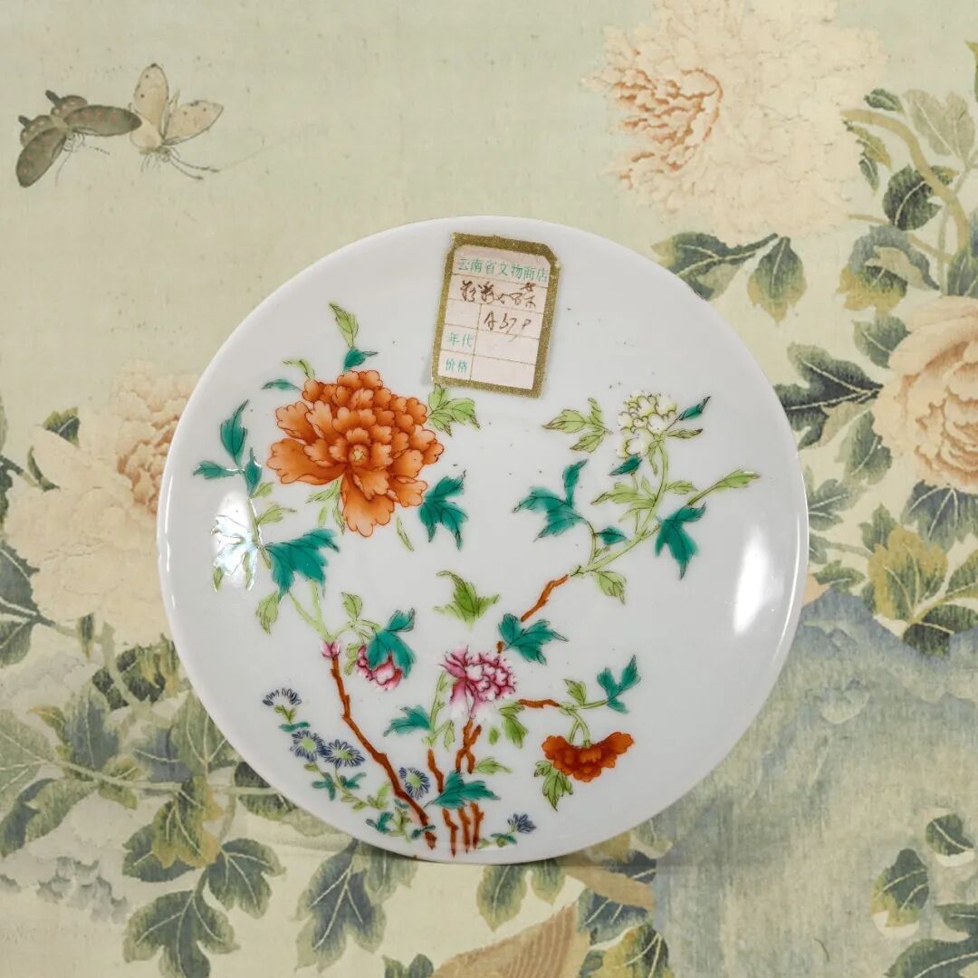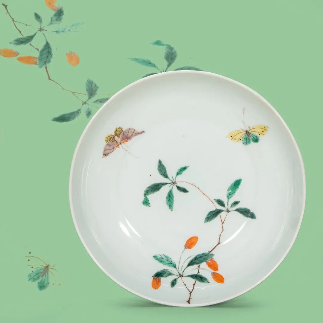 清康熙 五彩蝶恋花盘