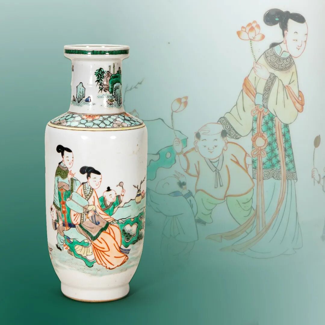清 五彩四妃六子图棒槌瓶