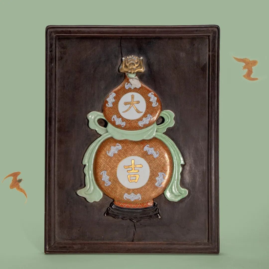 清中期 粉彩大吉葫芦挂屏
