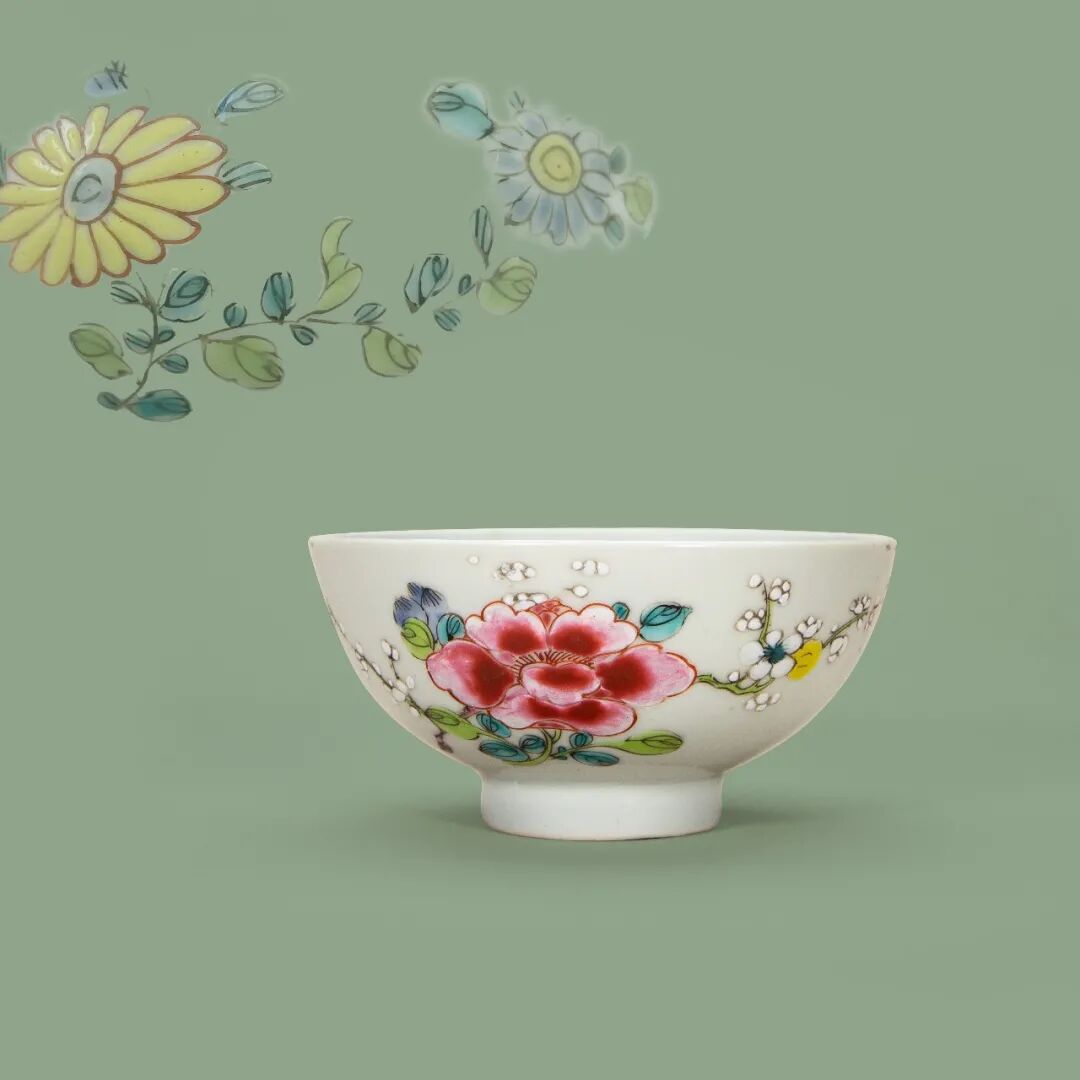清雍正 粉彩花开富贵纹碗