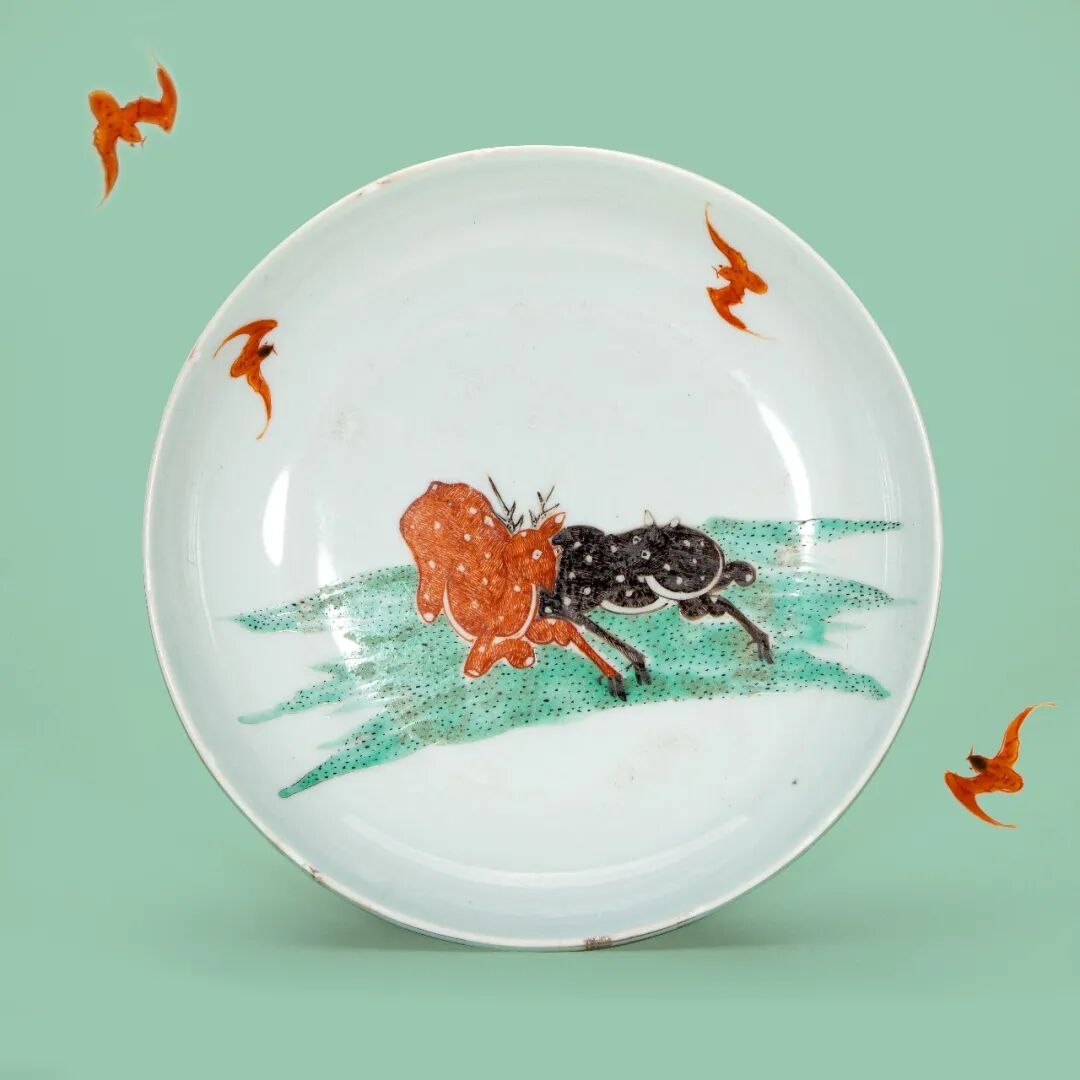 清雍正 五彩“福禄”纹盘