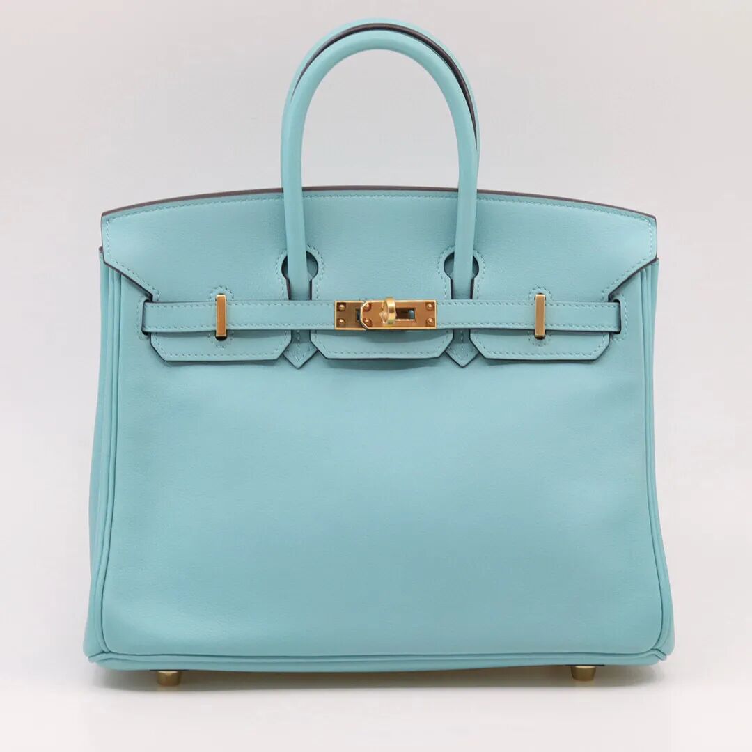 马卡龙蓝色SWIFT小牛皮25公分Birkin包附金色配件