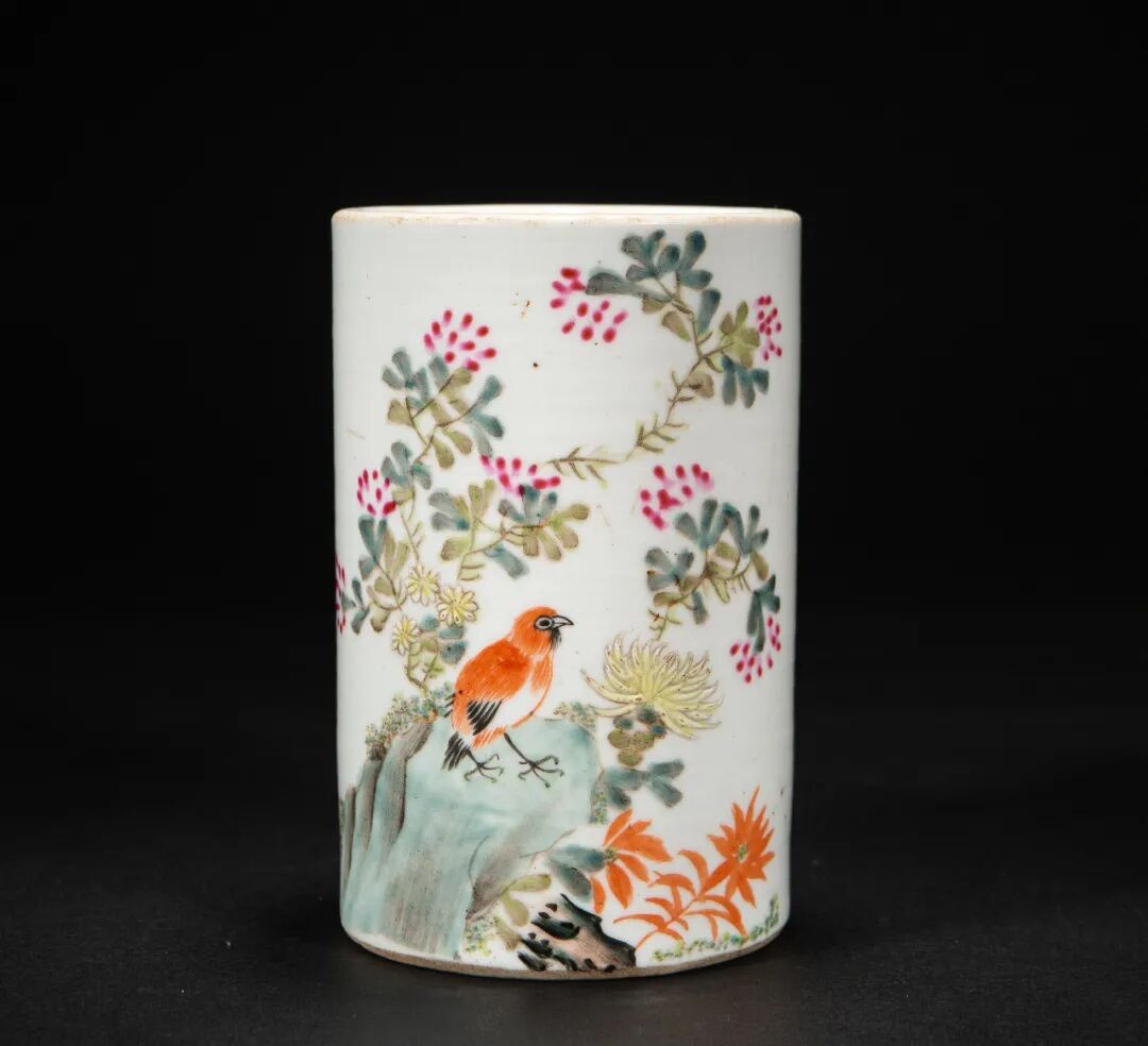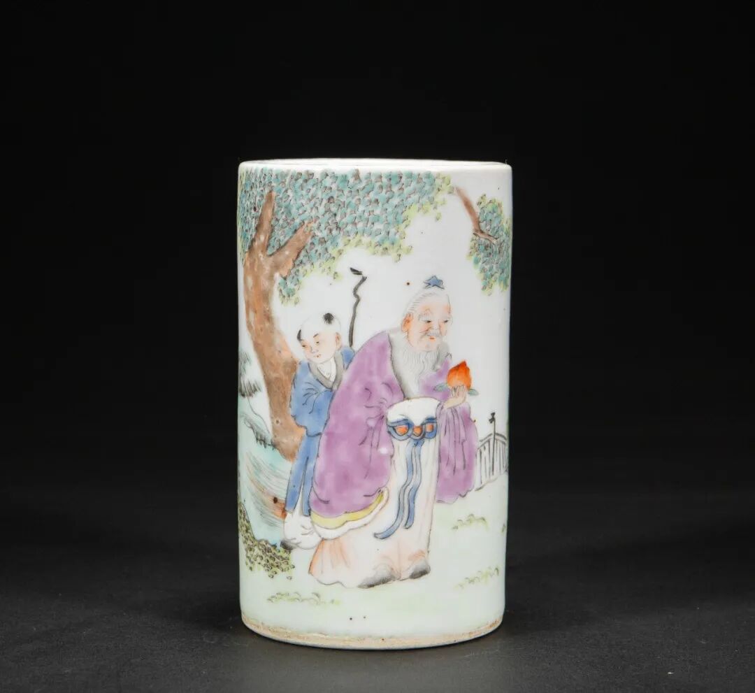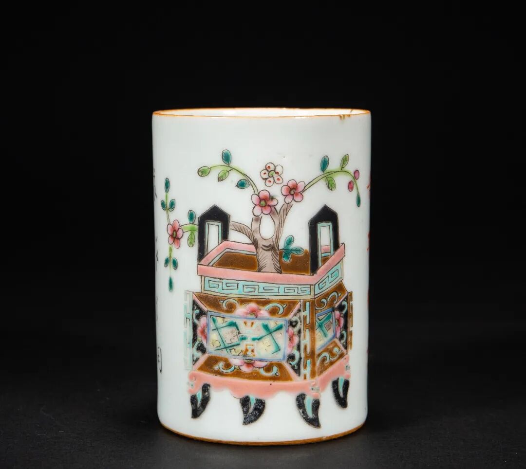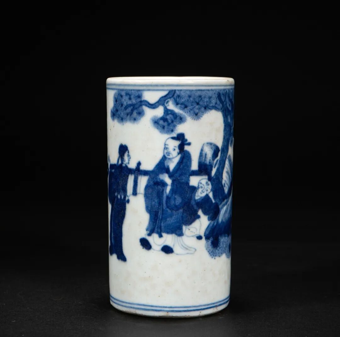 在文人书房中,除了笔、墨、纸、砚这传统“四宝”外,笔筒也是桌案上不可或缺的重要文房之一。笔筒的材质较多,瓷、玉、竹、木、漆均比较常见,形制或圆或方,也有呈植物形或他形的。从文献资料来看,笔筒的明确记载始见于明,传世实物则多为明清及以后的制品。