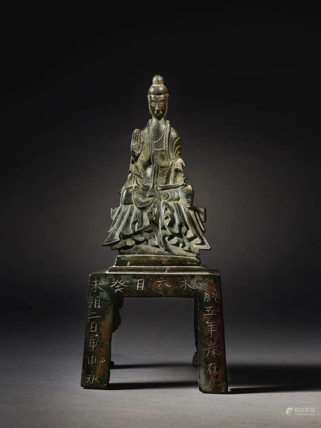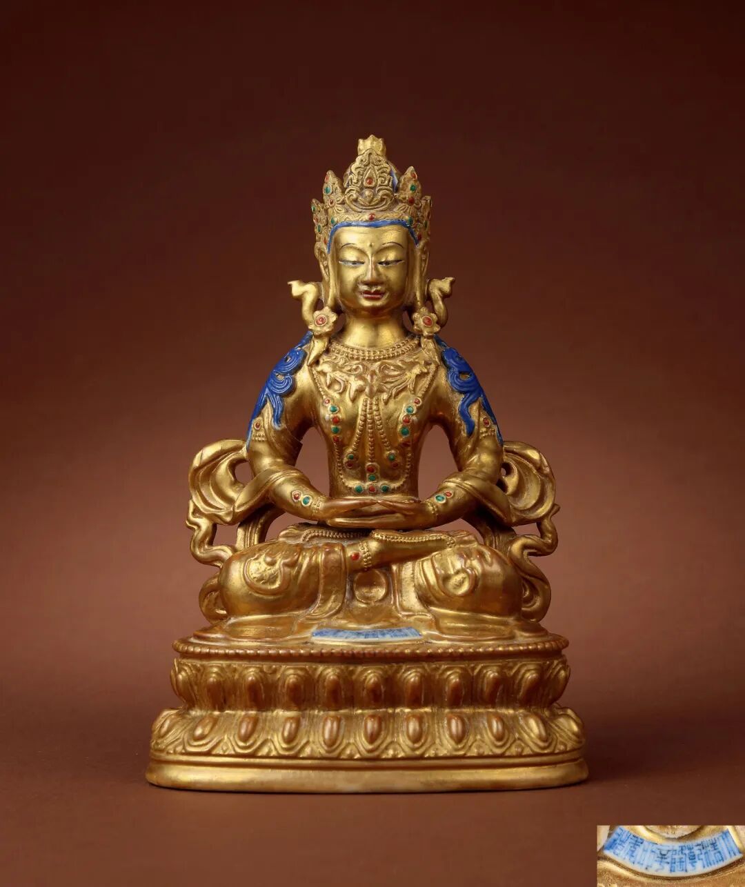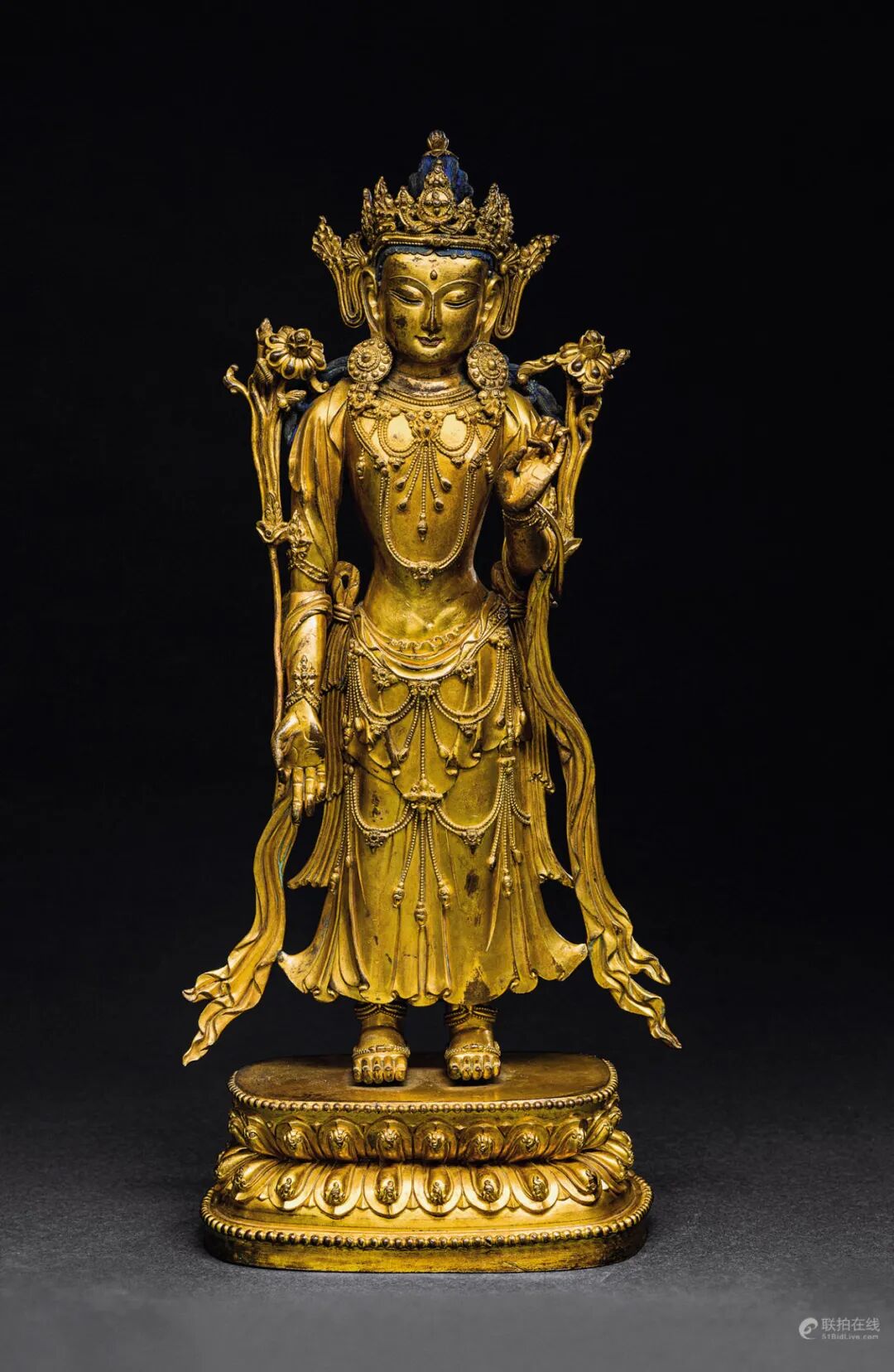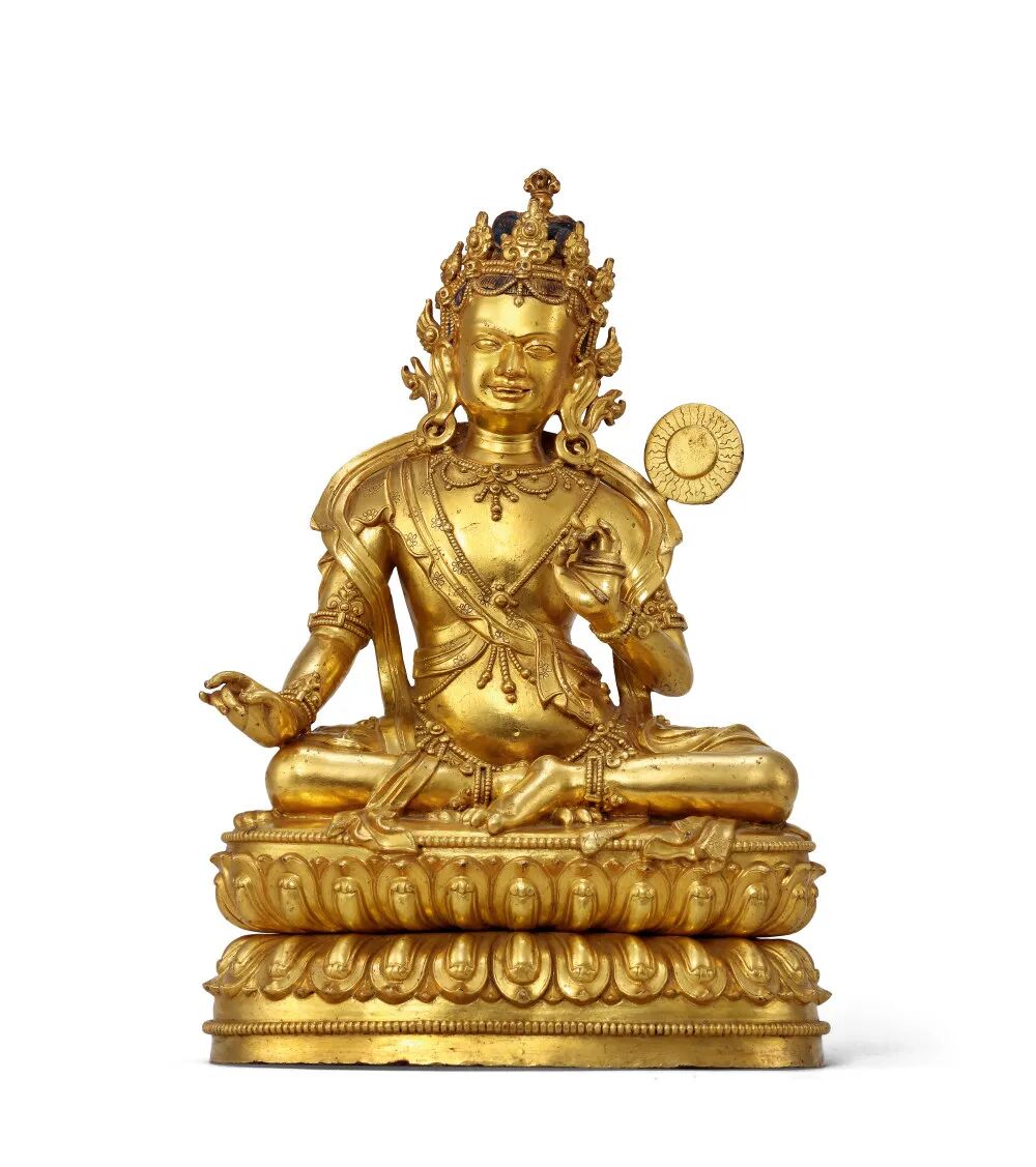 北京保利2021春季拍卖会 恒吉祥,永平安——信仰与皇权之夜(下) Lot 50911.台北故宫博物院,《金铜佛造像特展图录》,1987年,图版1192.香港佳士得,《香港佳士得二十周年回顾-中国瓷器及工艺品精选》,2006年,第261页2.佳士得香港,2001年10月29日,编号510北京保利2021春季拍卖会 恒吉祥,永平安——信仰与皇权之夜(上) Lot 5069中国嘉德2021春季拍卖会 旃檀林——佛教艺术集萃 Lot 37281.伦敦拍卖会2008年11月5日,封面作品,Lot 231;2.香港拍卖会2011年4月8日,Lot 2839,成交价 3314万港币。中国嘉德2021秋季拍卖会 旃檀林—佛教艺术集萃 Lot 3873上海匡时2021年春季拍卖会 云水禅心—佛教及铜炉艺术精粹 Lot 0576拍品估价:20,000,000 - 30,000,000 人民币上海嘉禾2021年春季艺术品拍卖会 《禾风》——中国书画夜场 Lot 8108拍品估价:3,000,000 - 4,000,000 人民币上海匡时2021年春季拍卖会 云水禅心—佛教及铜炉艺术精粹 Lot 0525拍品估价:15,000,000 - 20,000,000 港币香港苏富比2021年秋季拍卖会 德安堂藏玉·中国艺术珍品 Lot 3651拍品估价:5,000,000 - 7,000,000 港币香港苏富比2021年秋季拍卖会 慈怀澄观:思沃格伉俪珍藏早期佛教铜像 Lot 3503铭文:大统五年岁在己未六月癸未朔二日甲申永川寺比丘惠乐造 释迦牟尼像一区 仰为皇帝陛下七世所主因缘 眷属法界众生 住静佛□□铜有身拍品估价:12,000,000 - 18,000,000 人民币北京保利2021秋季拍卖会 如如不动—重要佛造像艺术 Lot 5616拍品估价:1,500,000 - 2,500,000 美元佳士得纽约亚洲艺术周 印度、喜马拉雅及东南亚工艺精品 Lot 0406拍品估价:5,000,000 - 8,000,000 人民币西泠印社2020年秋季拍卖会 萃古熙今·文房古玩专场 Lot 3449拍品估价:12,000,000 - 15,000,000 人民币北京永乐2021春季拍卖会 一切如来·重要佛教造像艺术夜场 Lot 0006拍品估价:10,000,000 - 15,000,000 人民币北京永乐2021春季拍卖会 一切如来·重要佛教造像艺术夜场 Lot 0004底座正面铭文汉译:「于14岁时铸造,为祈福长寿,依照班禅的身像而造,顶礼。」底座背面铭文汉译:「此像内装有:佛陀五种舍利、班禅本人头发等,具有诸多加持,另有班禅亲手加持的青稞百粒,顶礼至尊洛桑益西!」出版:黄春和,《金色如来—水月轩藏金铜佛像》,文物出版社,2013年10月第一版,编号7拍品估价:8,000,000 - 12,000,000 人民币北京华艺国际2021秋季拍卖会 大美——古代宫廷器物夜场 Lot 1250拍品估价:9,000,000 - 12,000,000 人民币北京永乐2021春季拍卖会 一切如来·重要佛教造像艺术夜场 Lot 0005明宣德(1426~1435年) 金刚手菩萨像 铜镀金