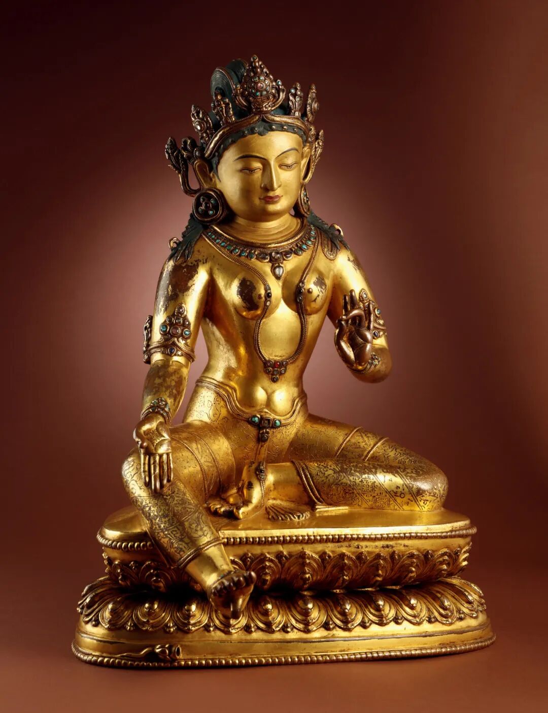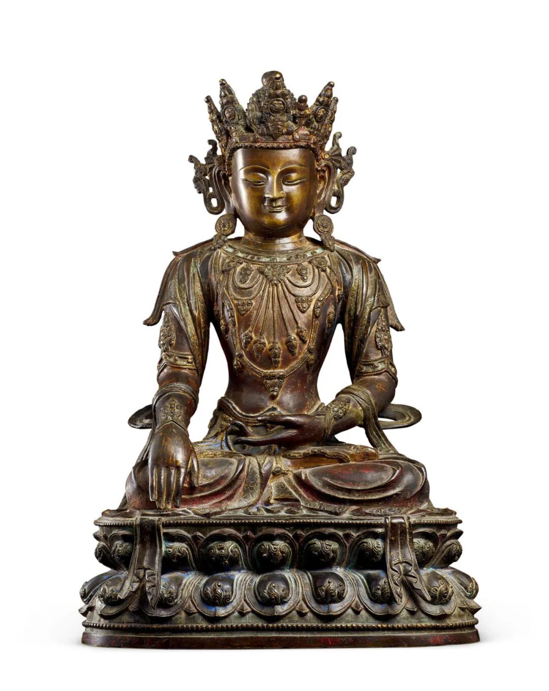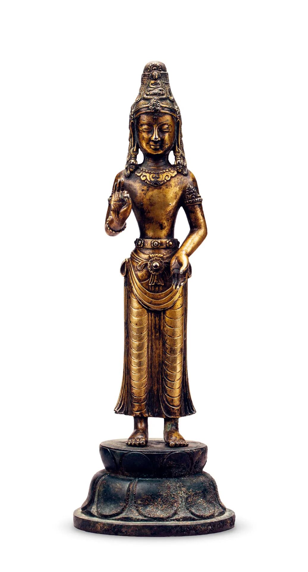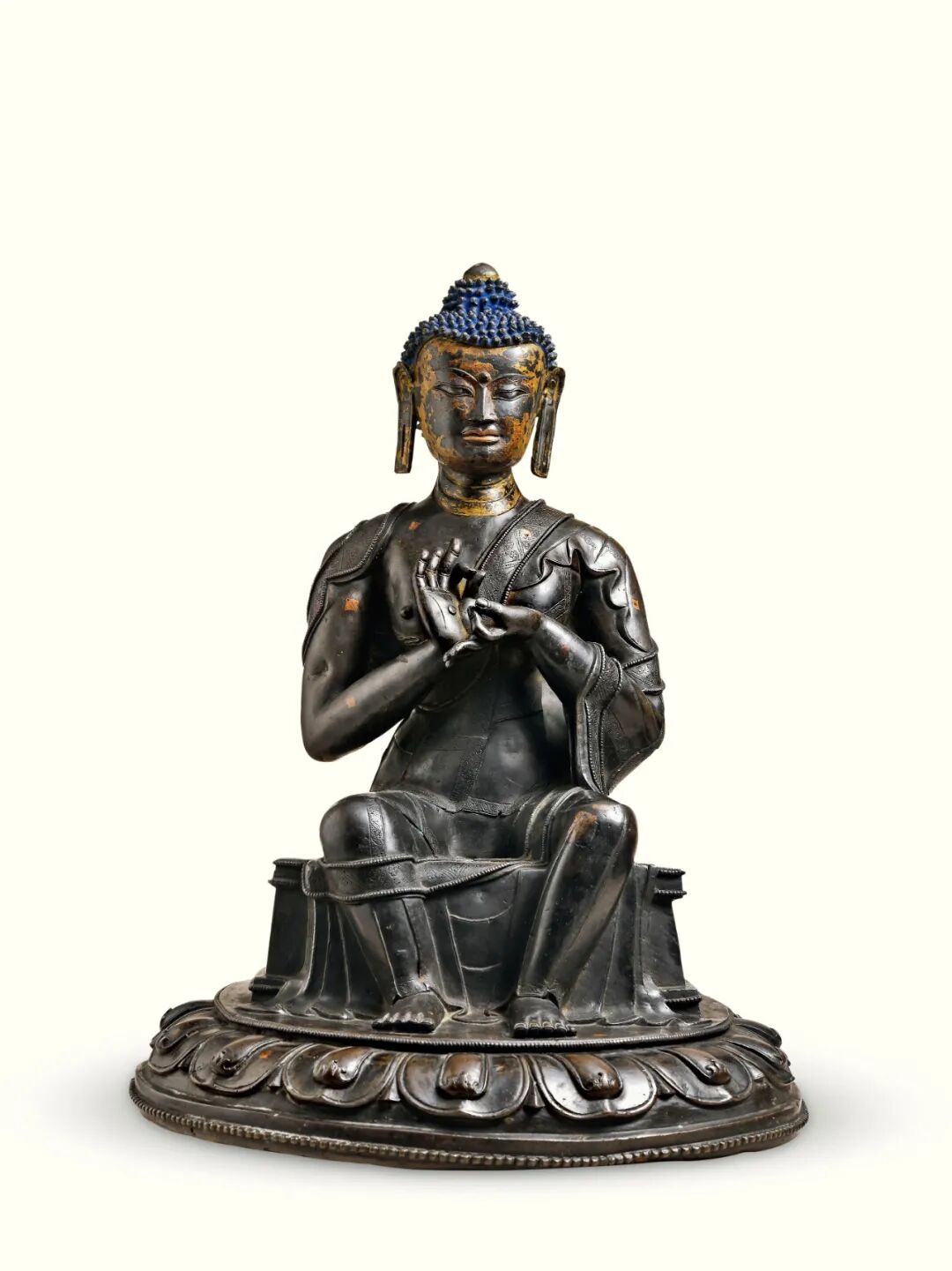北京保利2021春季拍卖会 恒吉祥,永平安——信仰与皇权之夜(下) Lot 50911.台北故宫博物院,《金铜佛造像特展图录》,1987年,图版1192.香港佳士得,《香港佳士得二十周年回顾-中国瓷器及工艺品精选》,2006年,第261页2.佳士得香港,2001年10月29日,编号510北京保利2021春季拍卖会 恒吉祥,永平安——信仰与皇权之夜(上) Lot 5069中国嘉德2021春季拍卖会 旃檀林——佛教艺术集萃 Lot 37281.伦敦拍卖会2008年11月5日,封面作品,Lot 231;2.香港拍卖会2011年4月8日,Lot 2839,成交价 3314万港币。中国嘉德2021秋季拍卖会 旃檀林—佛教艺术集萃 Lot 3873上海匡时2021年春季拍卖会 云水禅心—佛教及铜炉艺术精粹 Lot 0576拍品估价:20,000,000 - 30,000,000 人民币上海嘉禾2021年春季艺术品拍卖会 《禾风》——中国书画夜场 Lot 8108拍品估价:3,000,000 - 4,000,000 人民币上海匡时2021年春季拍卖会 云水禅心—佛教及铜炉艺术精粹 Lot 0525拍品估价:15,000,000 - 20,000,000 港币香港苏富比2021年秋季拍卖会 德安堂藏玉·中国艺术珍品 Lot 3651拍品估价:5,000,000 - 7,000,000 港币香港苏富比2021年秋季拍卖会 慈怀澄观:思沃格伉俪珍藏早期佛教铜像 Lot 3503铭文:大统五年岁在己未六月癸未朔二日甲申永川寺比丘惠乐造 释迦牟尼像一区 仰为皇帝陛下七世所主因缘 眷属法界众生 住静佛□□铜有身拍品估价:12,000,000 - 18,000,000 人民币北京保利2021秋季拍卖会 如如不动—重要佛造像艺术 Lot 5616拍品估价:1,500,000 - 2,500,000 美元佳士得纽约亚洲艺术周 印度、喜马拉雅及东南亚工艺精品 Lot 0406拍品估价:5,000,000 - 8,000,000 人民币西泠印社2020年秋季拍卖会 萃古熙今·文房古玩专场 Lot 3449拍品估价:12,000,000 - 15,000,000 人民币北京永乐2021春季拍卖会 一切如来·重要佛教造像艺术夜场 Lot 0006拍品估价:10,000,000 - 15,000,000 人民币北京永乐2021春季拍卖会 一切如来·重要佛教造像艺术夜场 Lot 0004底座正面铭文汉译:「于14岁时铸造,为祈福长寿,依照班禅的身像而造,顶礼。」底座背面铭文汉译:「此像内装有:佛陀五种舍利、班禅本人头发等,具有诸多加持,另有班禅亲手加持的青稞百粒,顶礼至尊洛桑益西!」出版:黄春和,《金色如来—水月轩藏金铜佛像》,文物出版社,2013年10月第一版,编号7拍品估价:8,000,000 - 12,000,000 人民币北京华艺国际2021秋季拍卖会 大美——古代宫廷器物夜场 Lot 1250拍品估价:9,000,000 - 12,000,000 人民币北京永乐2021春季拍卖会 一切如来·重要佛教造像艺术夜场 Lot 0005明宣德(1426~1435年) 金刚手菩萨像 铜镀金