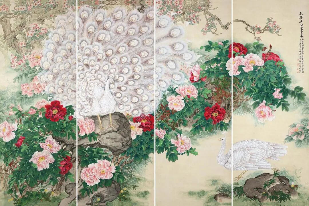 LOT 497 俞致贞(1915~1995) 孔雀屏开富贵春(四屏)