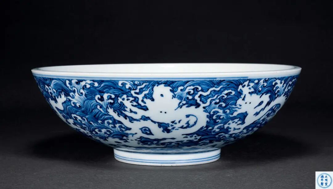 LOT 326 明宣德 海水龙纹青花留白骰子碗