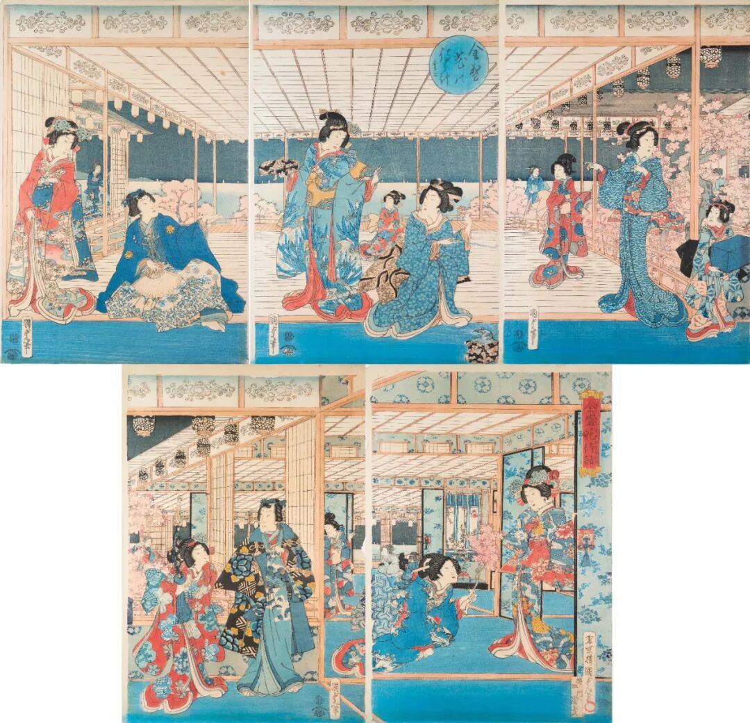 五枚续的源氏物语绘十分少见,集齐全品更是难得。博物馆馆藏只有此作中的三张。