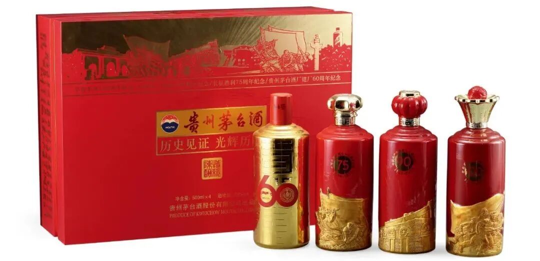 2011年,正值茅台建厂60周年、红军长征胜利75周年、建党90周年、辛亥革命100周年,为此茅台推出“历史见证光辉历程”纪念酒。一套四瓶,外观风格迥异,各具特色,文化内涵十足。