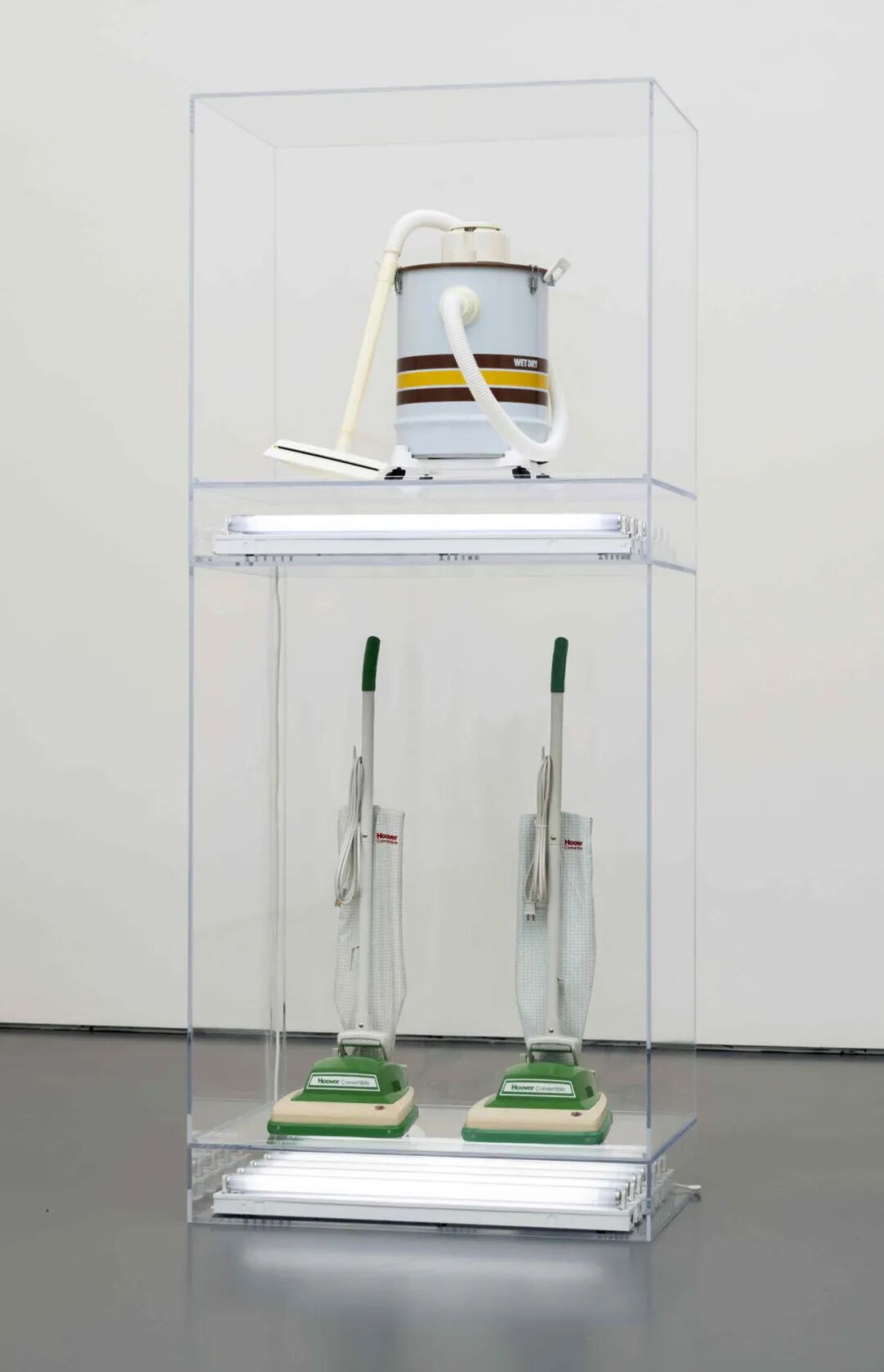 这件雕塑装置属于昆斯的「新」系列,这批作品代表昆斯在艺术世界初放异彩的足迹。1980年昆斯展出的少数雕塑预告了这批作品诞生,后者于纽约新美术馆(New Museum)橱窗展出。将日常物件作为艺术品呈现固然是马塞尔·杜尚(Marcel Duchamp)的先见之明,然而此作更添一层讽刺意味,作品中全新的真空吸尘器被外盒保护,远离它们本该清除的尘埃和污垢。昆斯通过这个系列也质疑了社会对清洁度与闪亮新物件的迷恋。