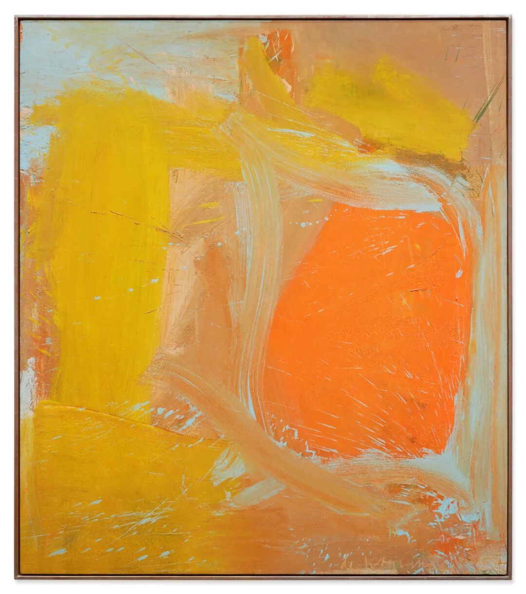 德库宁的《无题》作于1961年,同年他开始打造位于东汉普顿镇小村庄斯普林斯(Springs)的新家和工作室,自从1963年开始便长居于此。当时他离开了曼哈顿人口稠密的街区,搬到这个海滨小镇,当地风景明亮的氛围以及和煦的色彩如黄色、浅褐色和盐洗蓝色,迅即对艺术家同时期中最精彩的作品带来影响。
