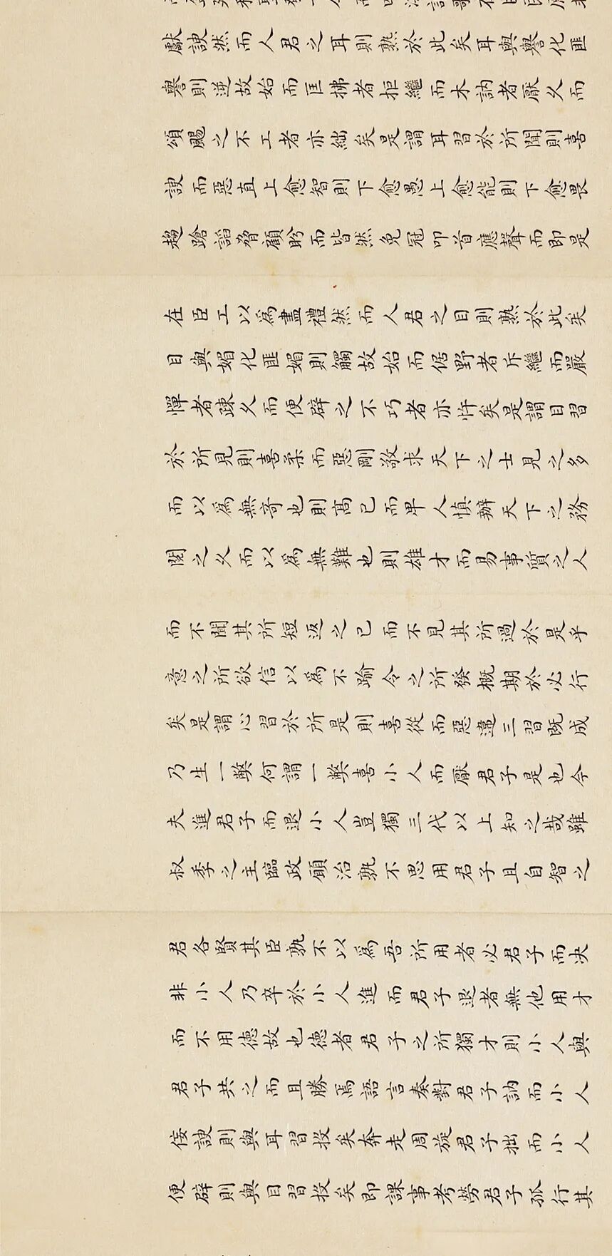 上愈智则下愈愚,上愈能则下愈畏,趋跄谄胁,顾盼而皆然,免冠叩首,应声而即是。在臣工以为尽礼,然而人君之目则熟于此矣。目与媚化,匪媚则触。故始而倨野者斥,继而严惮者疏,久而便辟之不巧者亦忤矣。是谓目习于所见则喜柔而恶刚!
