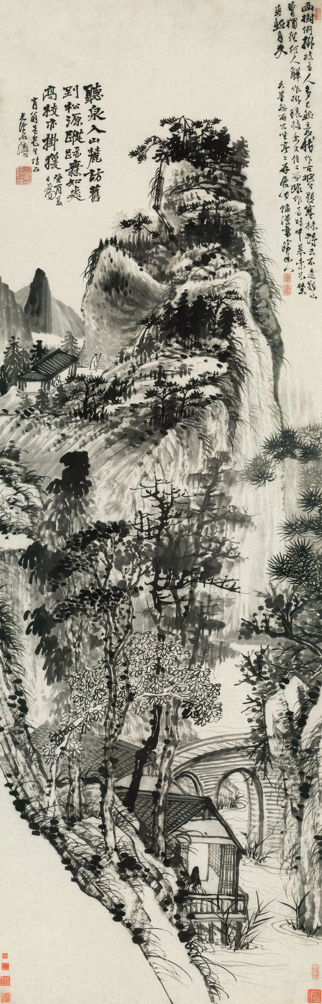 342 石涛 山麓听泉图
