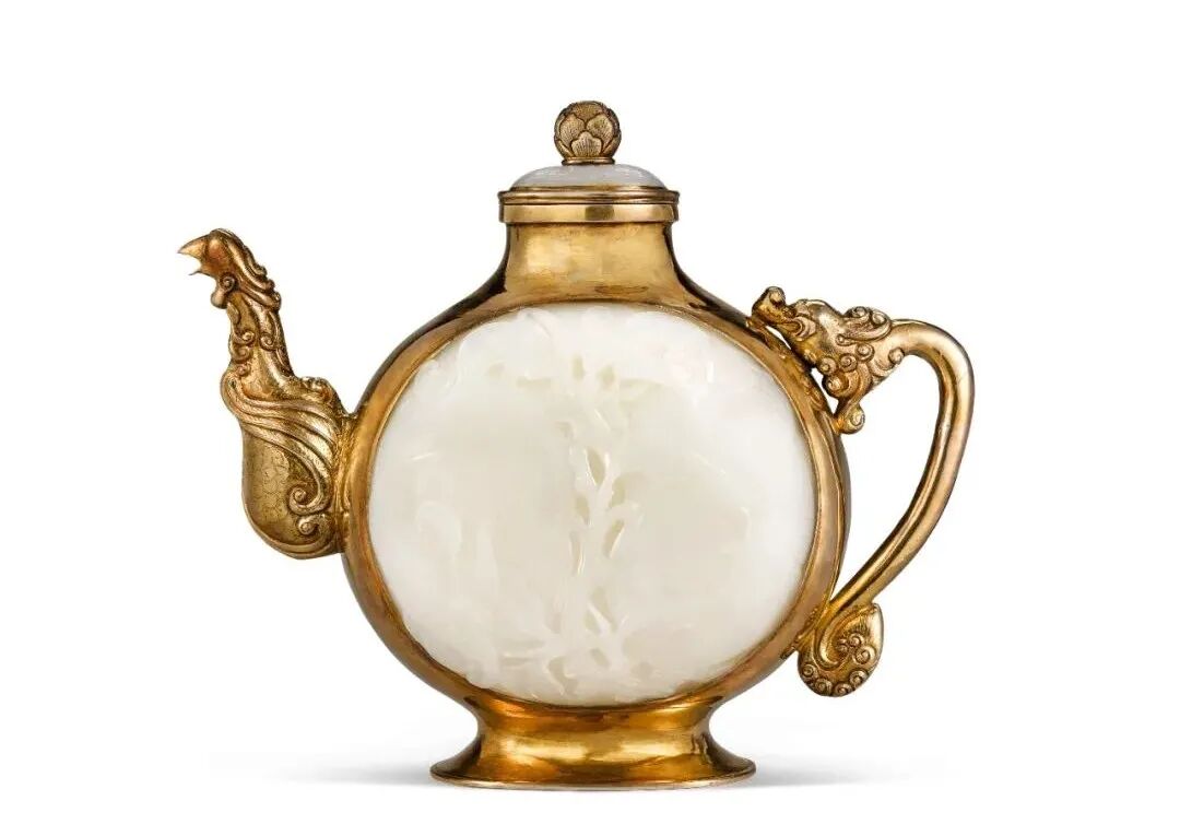 清十八/十九世纪 鎏金银嵌白玉福寿龙凤盖壶