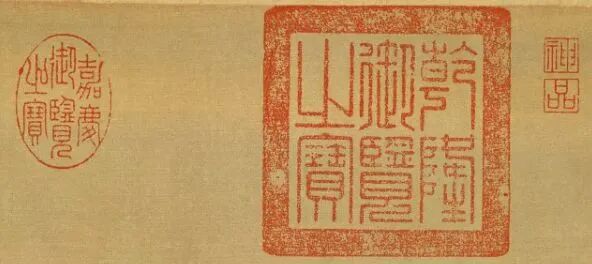 《石渠宝笈》中所藏作品又可大致分为上下两等。上等作品受到格外厚待,在已有上述3个玺印的基础上还要再加3个:即“乾隆鉴赏”、“三希堂精鉴玺”、“宜子孙”。当然,这只是一般常见的组合,有时还会出现增减玺印的情况,变化很多。