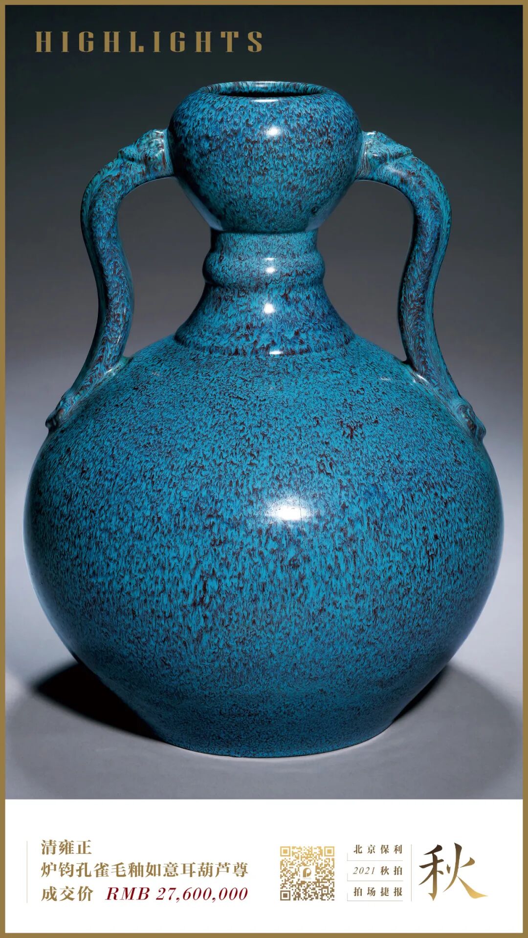 清雍正 爐鈞孔雀毛釉如意耳葫蘆尊
