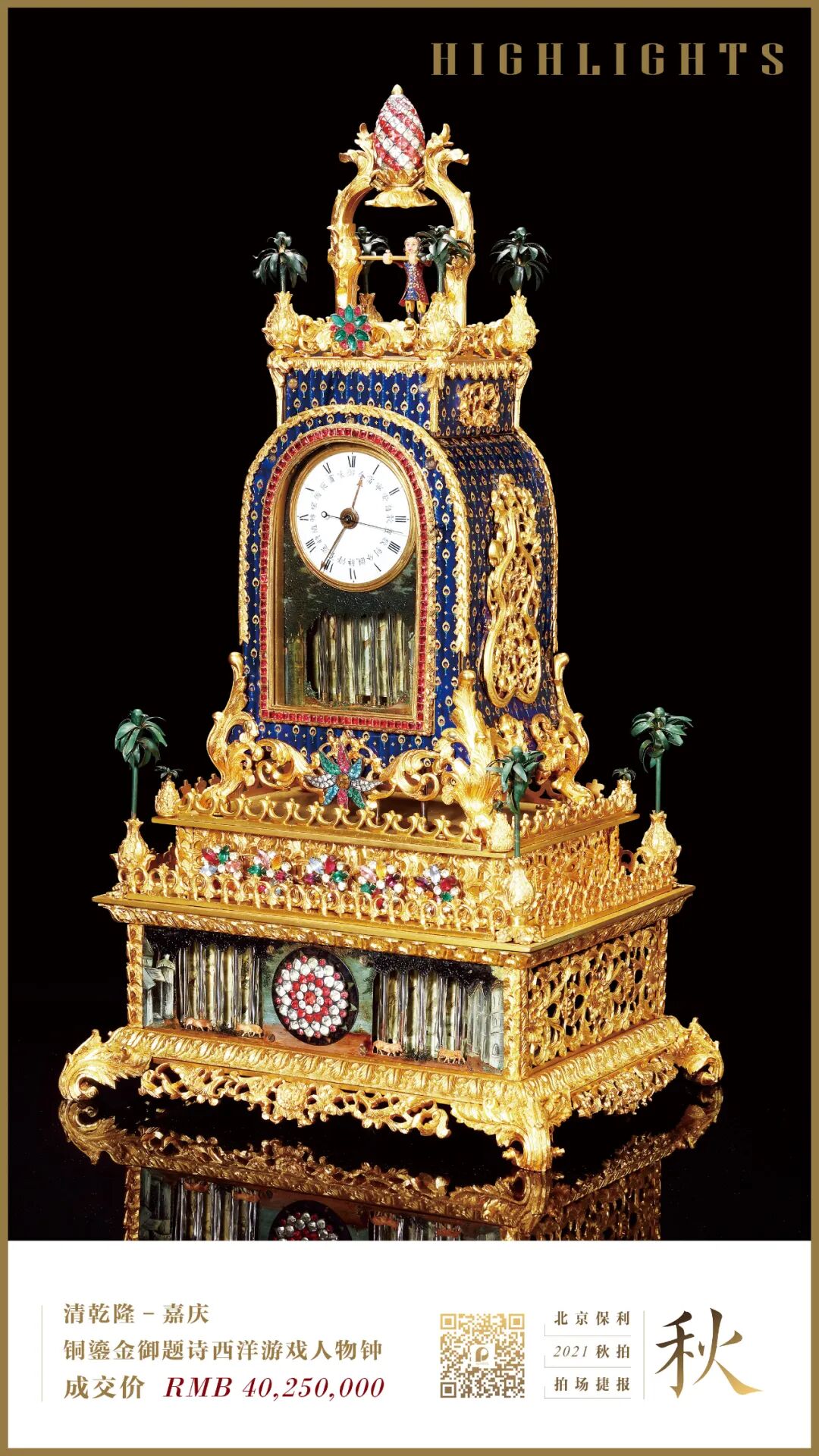 清乾隆-嘉慶 銅鎏金御題詩西洋遊戲人物鍾