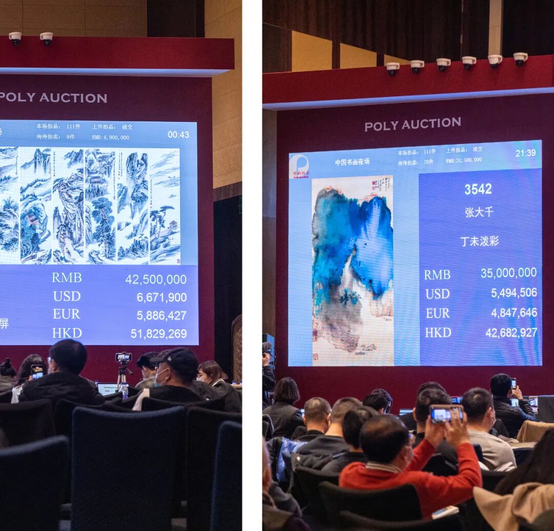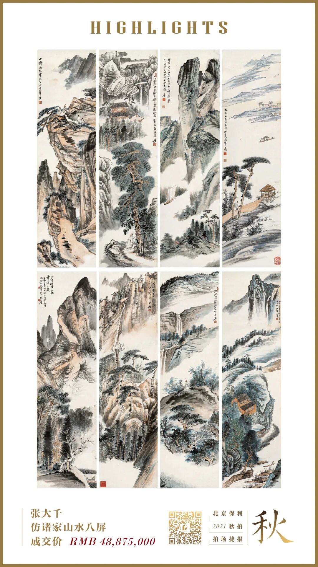 ●20件千萬元級作品,張大千《仿諸家山水八屏》以4887.5萬元成交,成為本場最大黑馬
