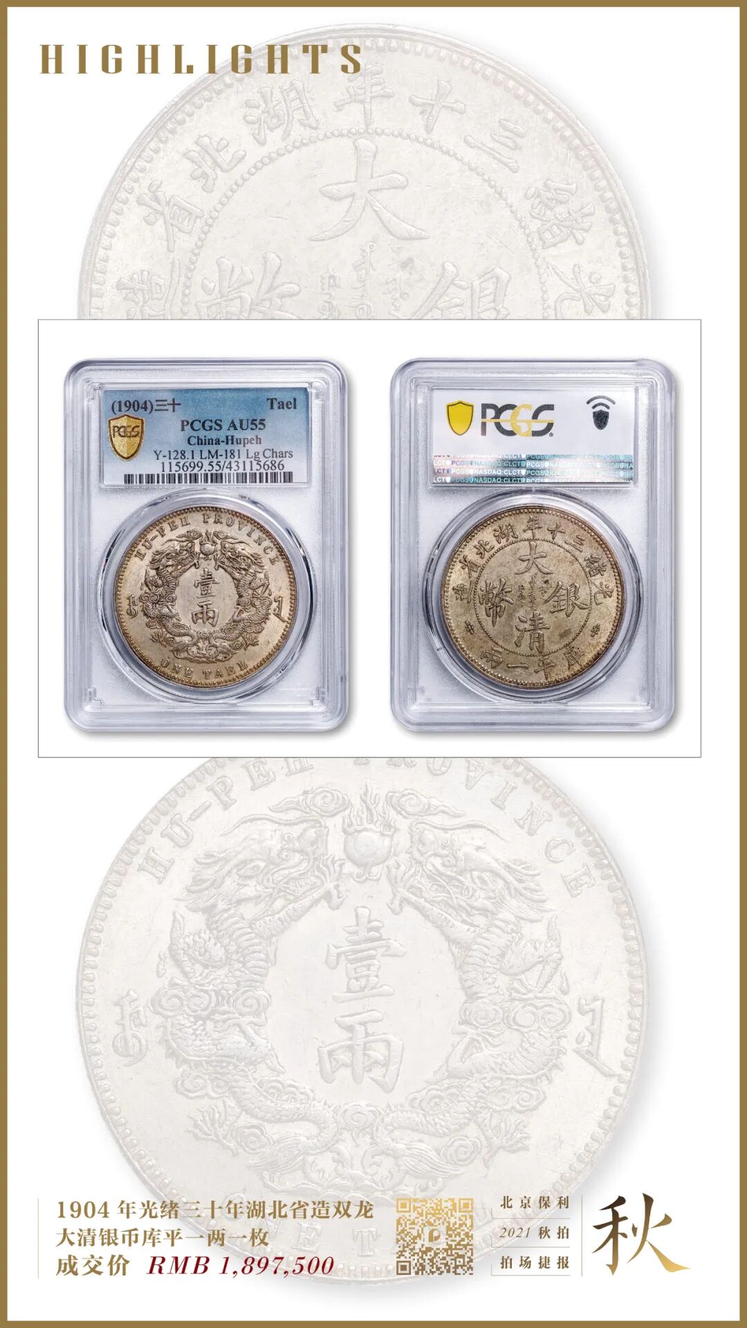 1904年光緒三十年湖北省造雙龍大清銀幣庫平一兩一枚