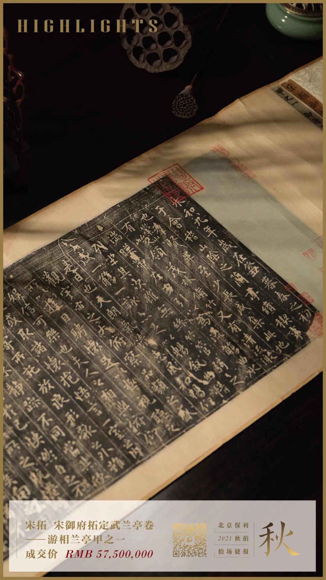 ●13件千萬元級作品,宋拓《宋御府拓定武蘭亭卷——游相蘭亭甲之一》以5750萬元成交