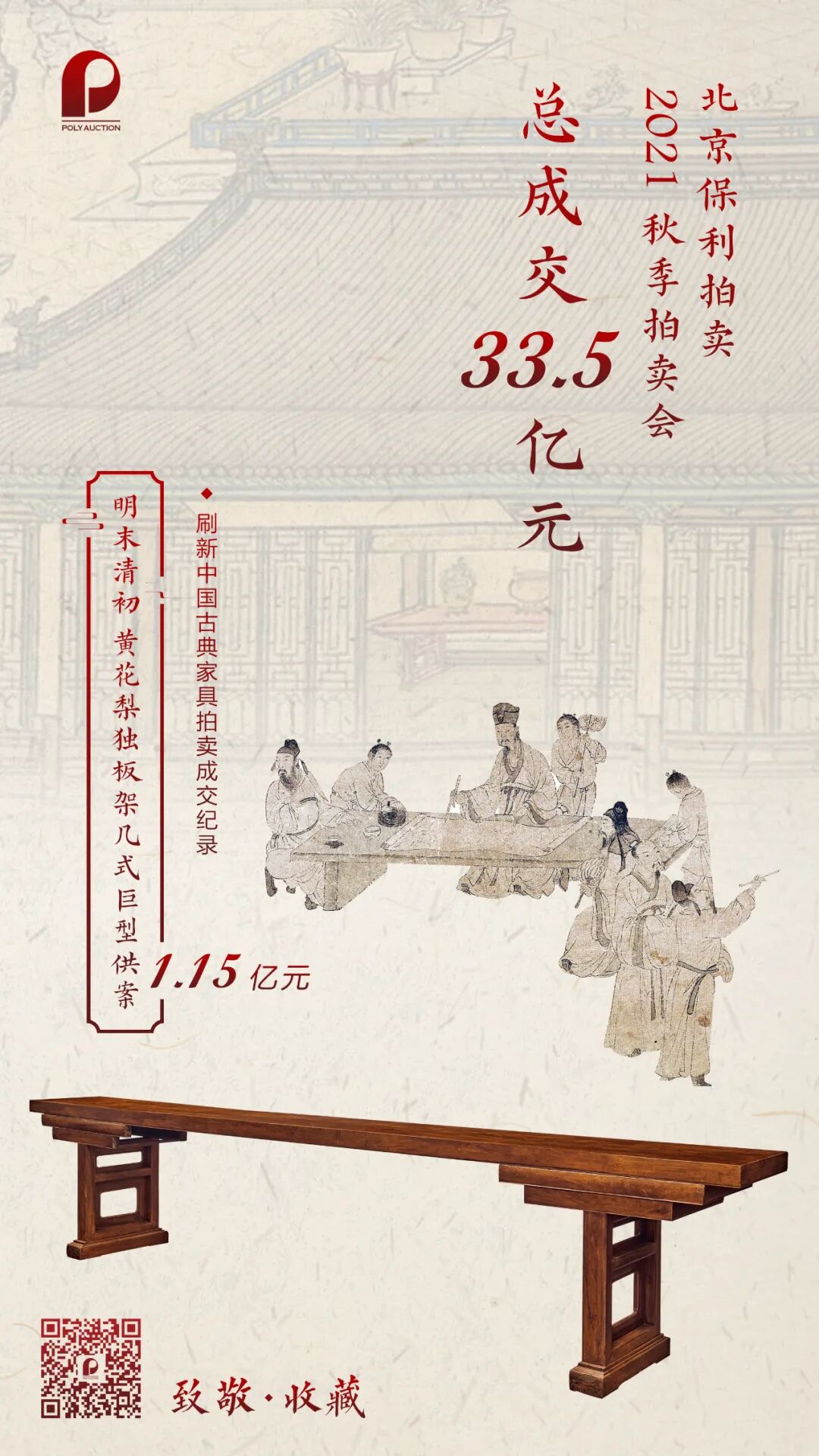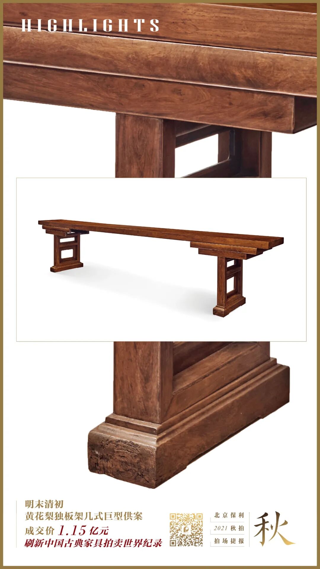 ●明末清初 黃花梨獨板架幾式巨型供案以1.15億元成交,刷新中國古典家具拍賣世界紀錄