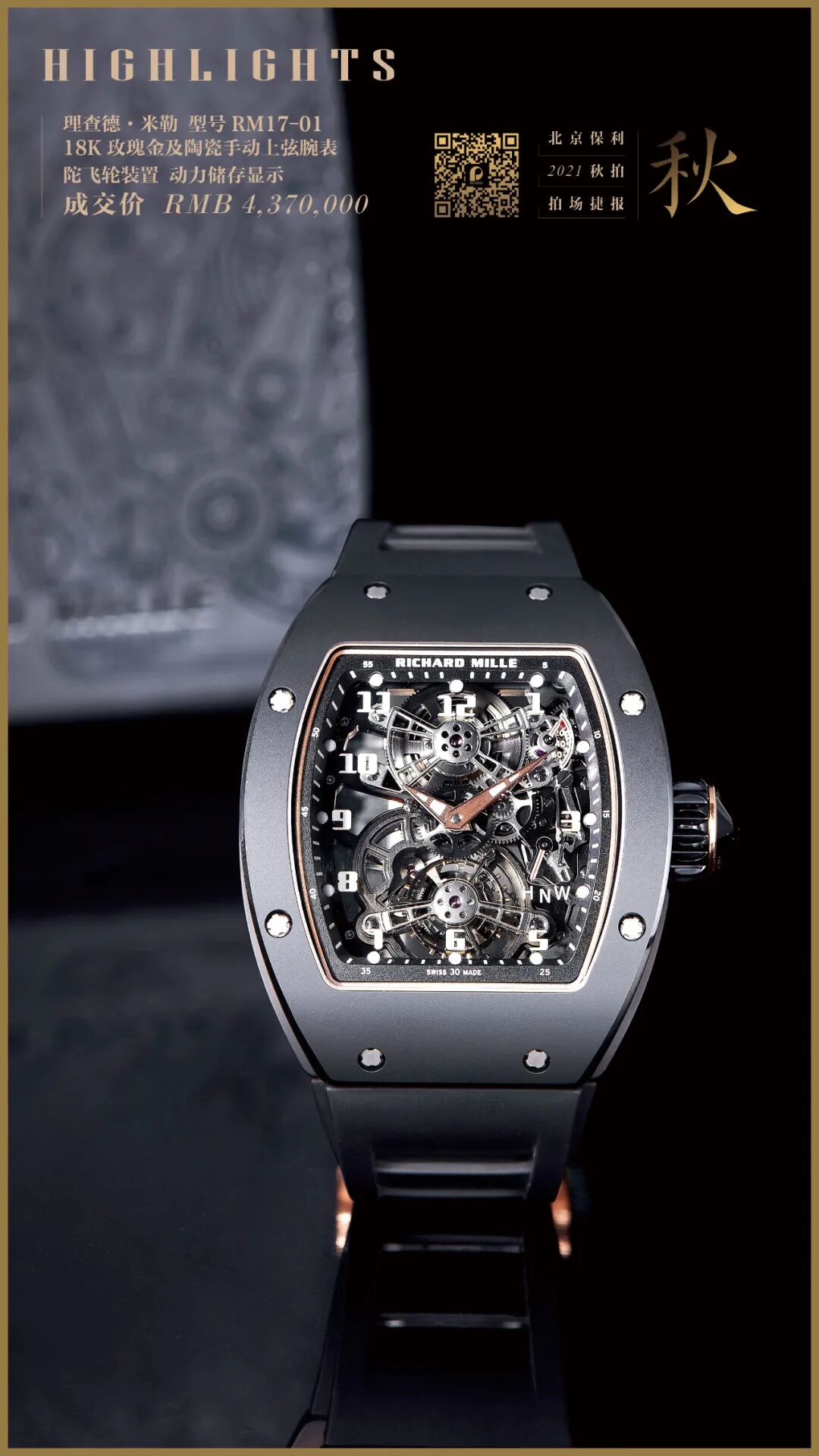理查德·米勒 型號RM17-0118K玫瑰金及陶瓷手動上弦腕錶陀飛輪裝置 動力儲存顯示