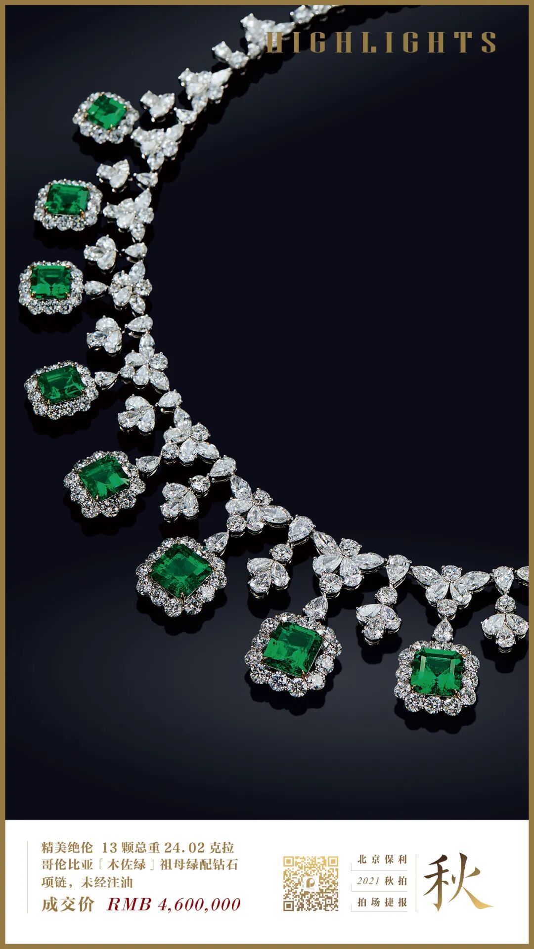精美絕倫 13顆總重24.02克拉哥倫比亞「木佐綠」祖母綠配鑽石項鍊,未經注油