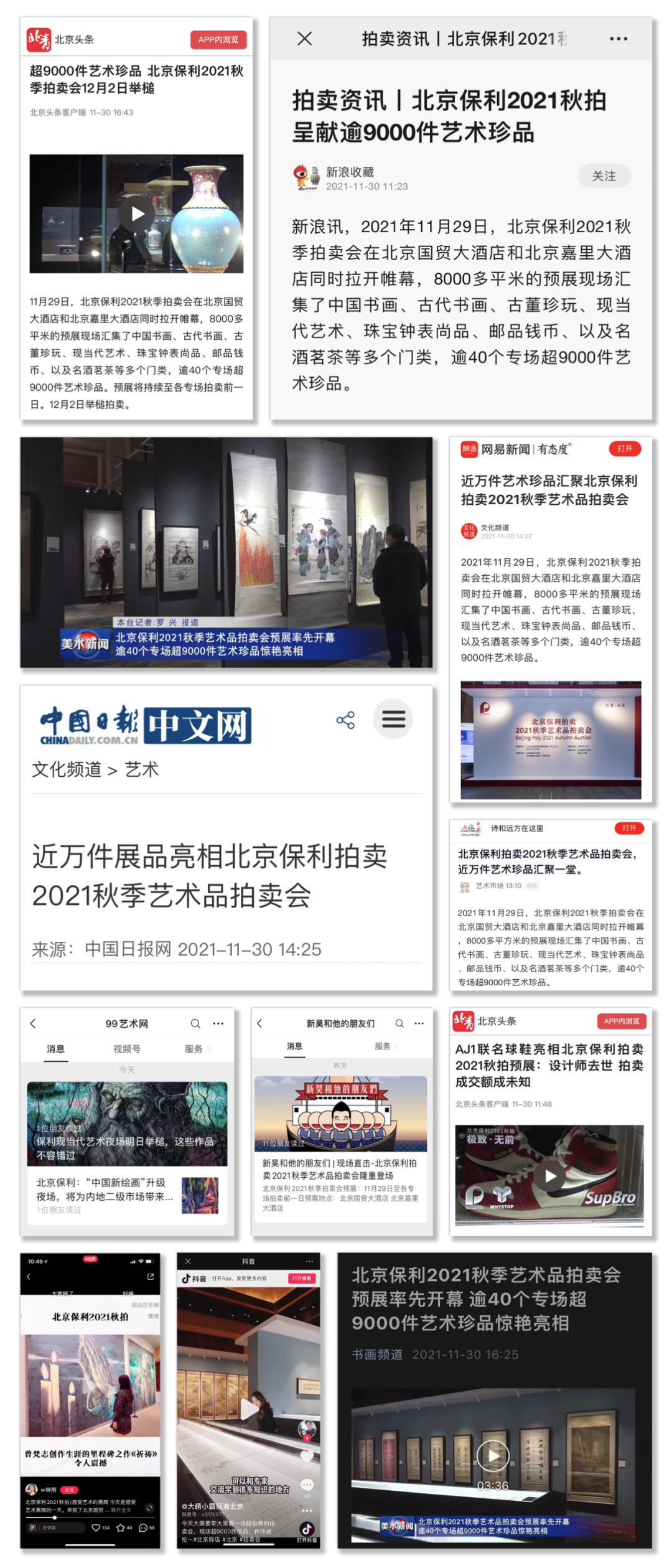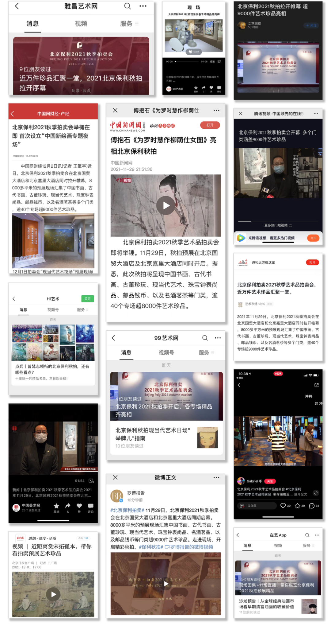 同期,中國日報、光明日報、北京日報、南方都市報、人民網、中國新聞網等多家主流媒體,雅昌藝術網、在藝、中國收藏、藝術中國、藝術市場等多家行業媒體,騰訊視頻、北青視頻、中新視頻、央視書畫等視頻媒體及專業視頻博主對秋拍進行了多角度、全方位的深度報道和專業推薦,有效地提升了本次秋拍的社會影響力,助力招商。