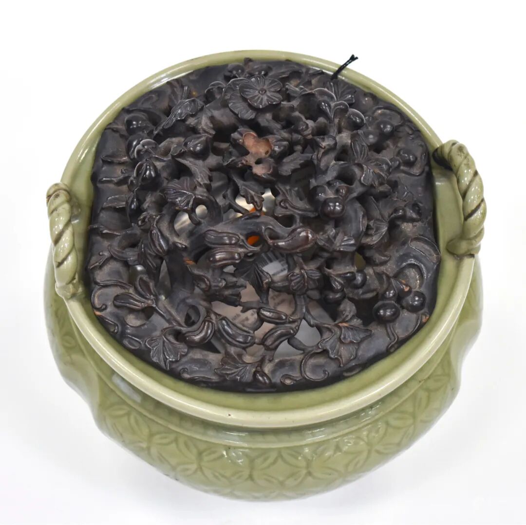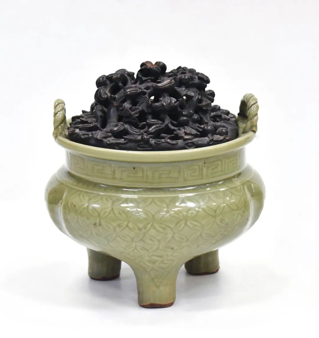 北京时间3月11日、12日晚上10点, Eden 将在佐治亚州玛丽埃塔带来一连两场的『何绍周将军美术古董』拍卖会。总计超600件古董珍玩上拍,包括玉器、瓷器、佛造像、珐琅器、金属器、文房和古典家具等,品类丰富。联拍在线将全程直播,并提供实时同步竞拍技术和服务支持。本场大部分拍品源自北美藏家旧藏,或出自苏富比历年拍卖,其中一组来自何绍周将军的庋藏(Lot 129 - Lot 160,Lot 547 - Lot 578)。全场拍品起拍价多在数百美元之间,价格接地气,极具捡漏空间。规格:L 24cm,W 18cm,H 29.5 cm,重 6720gLot 54 明十六世纪 龙泉窑青釉刻锦纹索耳三足大炉