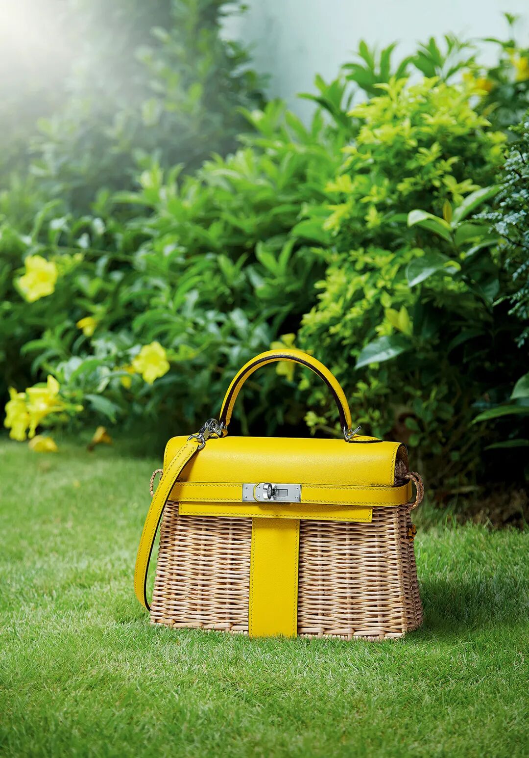 限量版那不勒斯黄色SWIFT小牛皮及柳條迷你野餐凱莉包