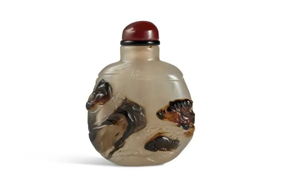 清十八 / 十九世纪 玛瑙巧雕山水图鼻烟壶