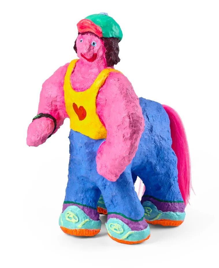 Super Future Kid惯用跃动的霓虹色彩,作出经典普普艺术的变奏。采用IG名字作为艺名,她名正言顺作为“职业儿童”,以千禧世代的怀旧及复古未来主义作身份,拒绝长大。她在东德成长,一直与西方文化区隔,在柏林围墙倒下后深受文化冲击,继而引为创作原动力。所有玩具式的欢乐色调,对她而言都深具象征意义。我尤其喜爱Super Future Kid梦幻般的另类时空,而拍卖中人马造型的雕塑,则凝聚了创作者的青春活力。![]()