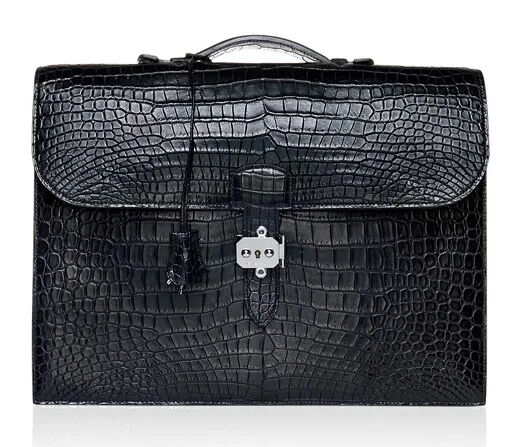 霧面黑色POROSUS鱷魚皮DEPECHES男士公文包附銀色金屬配件