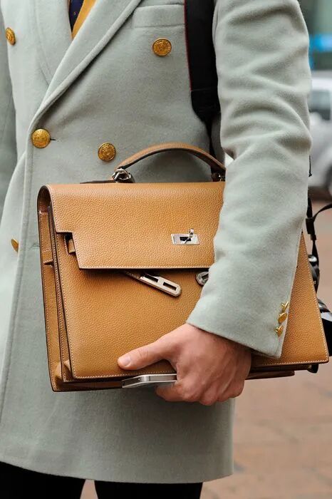 32公分或以上的凱莉包,是西裝或一般休閒服裝的完美搭配,搭配商務造型可以儘顯男士的高雅氣質。
