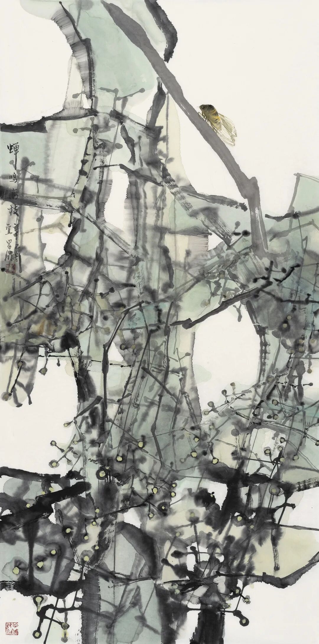 传统花鸟画在20世纪的际遇,实在是值得研究的,在这个世纪,大写意、小写意、工笔都有所发展。在明清之际已经登峰造极的写意画风在近代因为赵之谦、吴昌硕、齐白石等人以金石入画,成就卓然,不输古人。同时,20世纪现实主义画风的兴起,也席卷了整个中国花鸟画,或有顺应潮流者,吸收西画之写实画法;或抱民族情怀者,返本以求,于唐宋传统中找寻力量。整体而言,20世纪中国画,一则工笔画发展迅速,二则求真重形为主流。但观其根本,中国花鸟画以笔墨审美为内核的传统评介标准还是得到了尊重,这使得20世纪中国画变革的底色是变其形貌,不变其精神。从这个角度来说,乔宜男的花鸟画可能走得更远了一点,他的花鸟画,保留了中国画的意境和格调这个更为悠久的传统,但在绘画语言上进行了有独创性的革新。