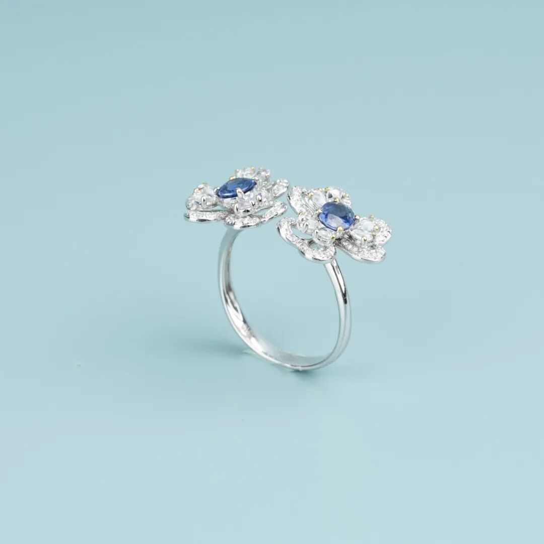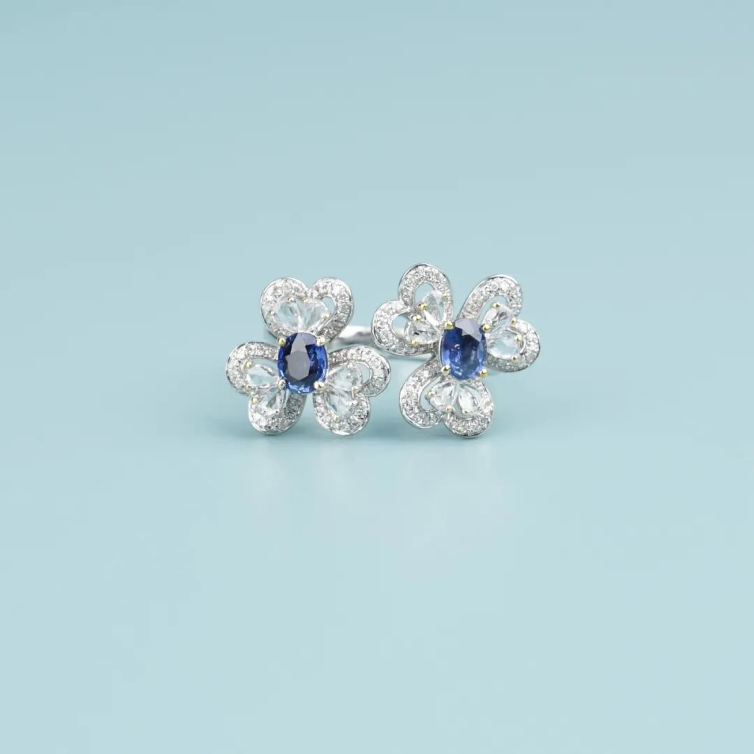 天然蓝宝石双生花卉造型戒指(蓝宝石共重约1.4克拉)
