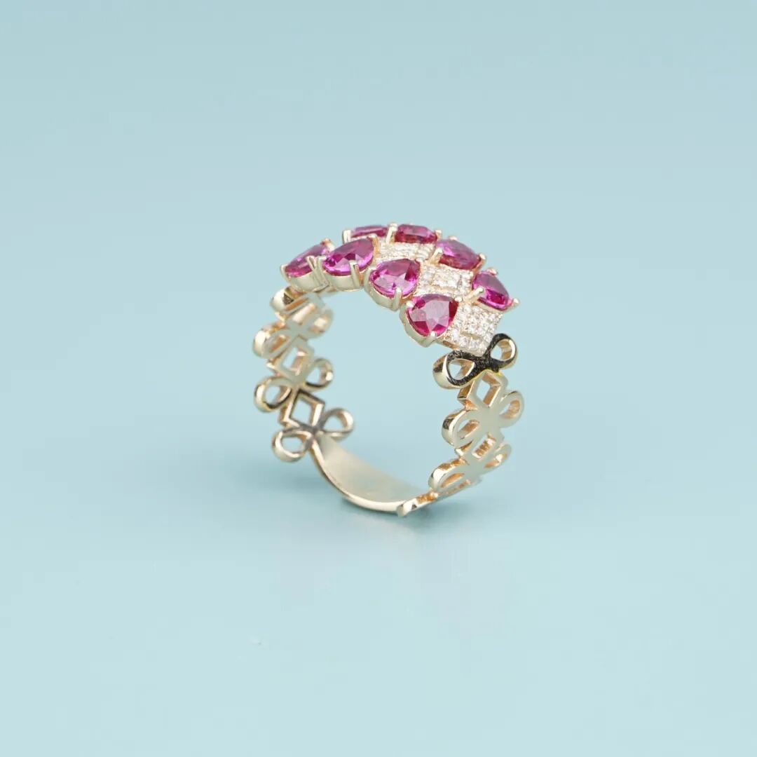 18k玫瑰金镶红宝石戒指,红宝石共重约2.9克拉,配镶钻石共重约0.30克拉。